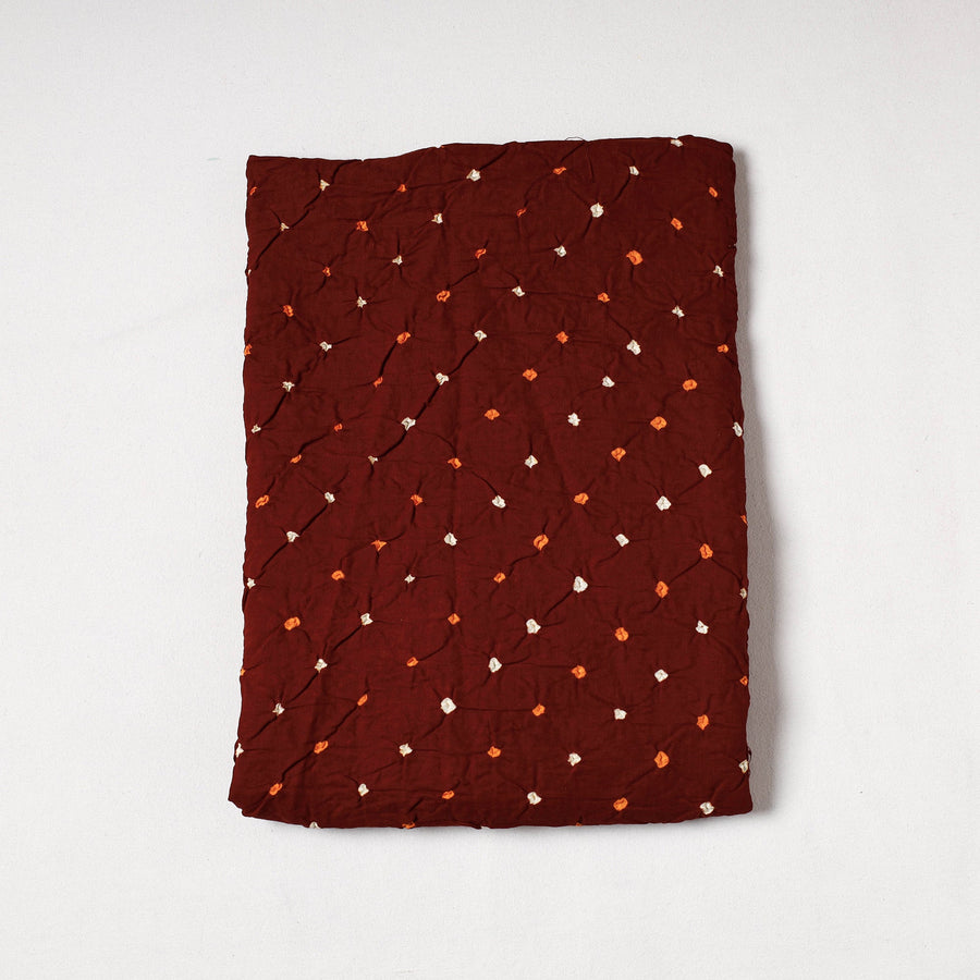 Fine quality brown kutch bandhani tie-dye mul cotton precut fabric featuring majestic bandhani pattern, tie-dyed using the traditional technique practised by the artisans of Kutch. The art of Bandhani is highly skilled process. The technique involves dyeing a fabric which is tied tightly with a thread at several points.
