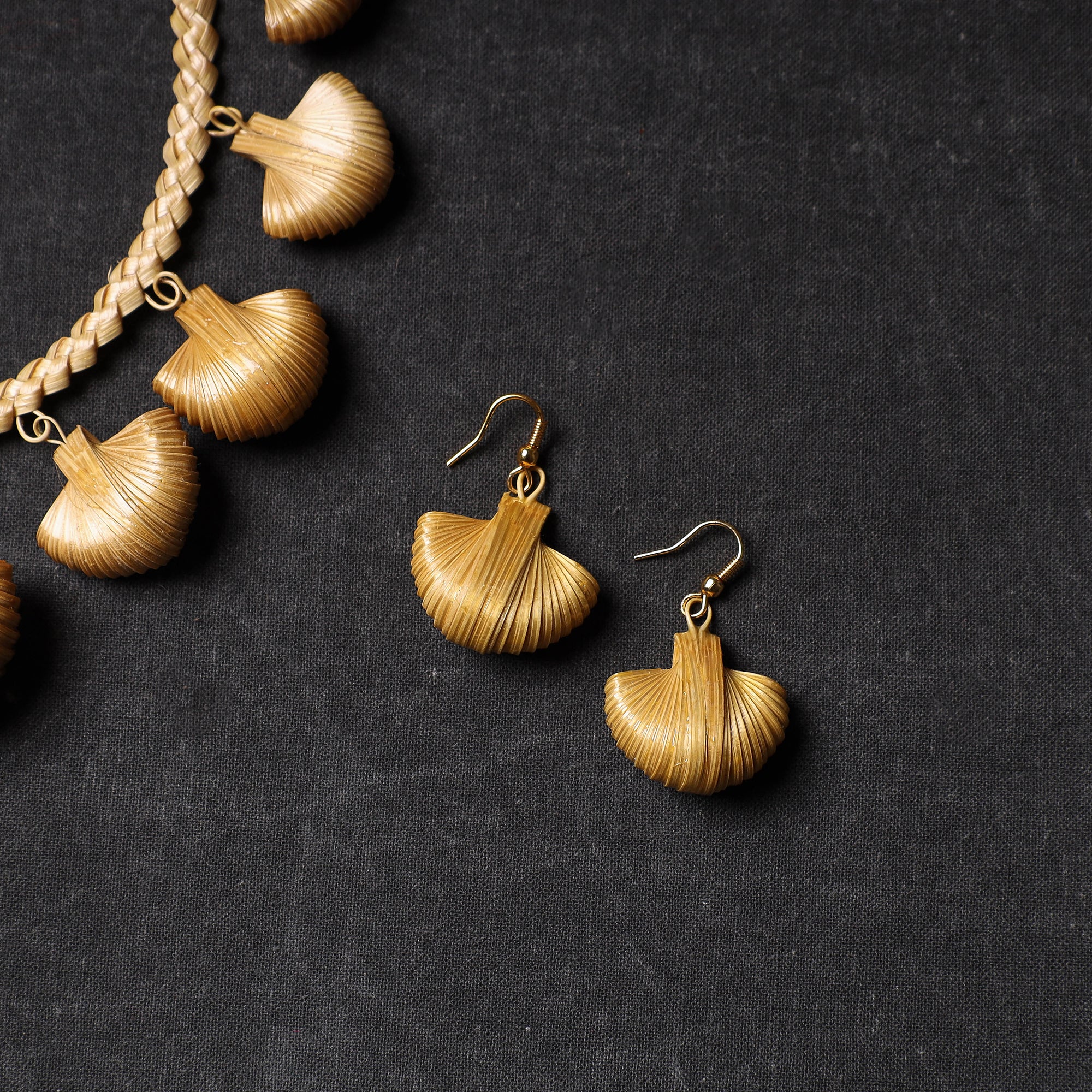 Yellow handmade bamboo craft necklace set, made from locally sourced variety of manvel bamboo crafted by tribal artisans of Raigad, Maharashtra.