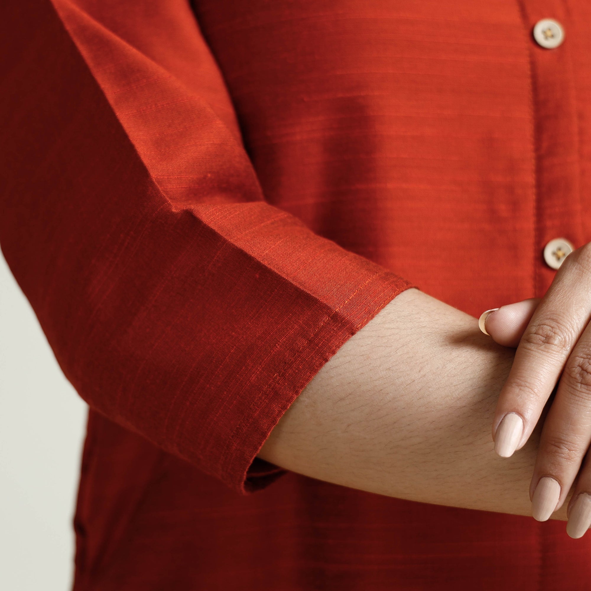 Look and feel beautiful in this uniquely designed plain dyed slub silk long kurta. This long kurta is crafted from high-quality slub silk fabric, ensuring a luxurious and comfortable feel against your skin. The kurta also features a convenient one-side pocket, perfect for carrying small essentials. It's an ideal choice for both casual and festive occasions.