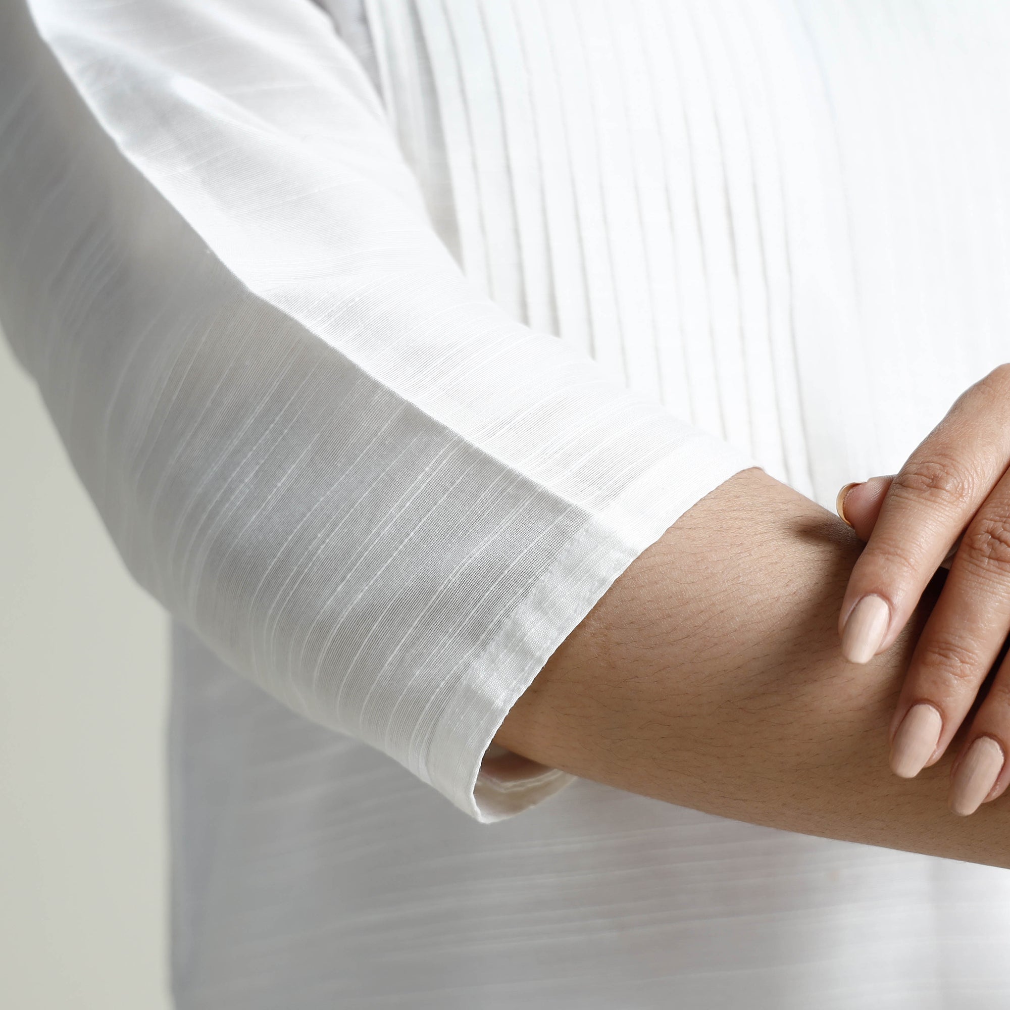 Material Look and feel beautiful in this uniquely designed pintuck plain dyed slub silk long kurta. This long kurta is crafted from high-quality slub silk fabric, ensuring a luxurious and comfortable feel against your skin. It boasts an exquisite pintuck design, adding a touch of elegance to your ensemble. The kurta also features a convenient one-side pocket, perfect for carrying small essentials. It's an ideal choice for both casual and festive occasions.