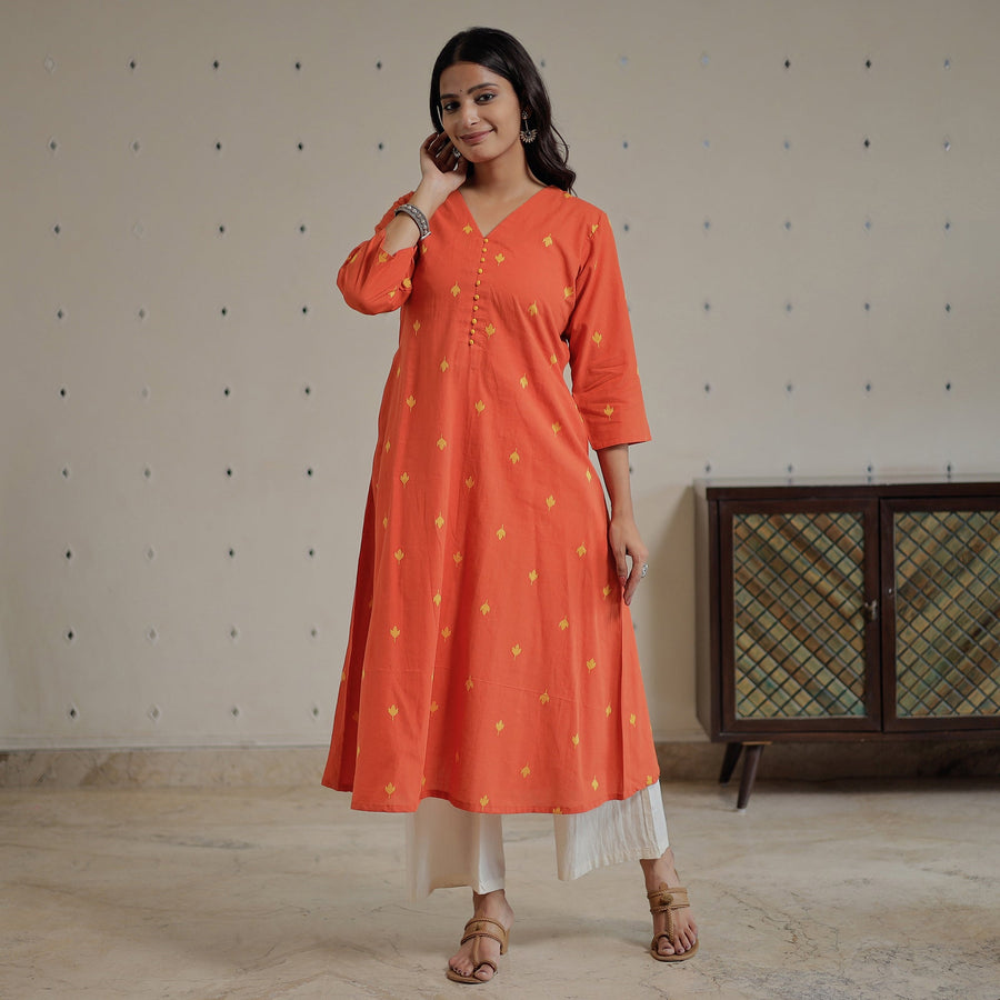 Look and feel beautiful in this uniquely designed jacquard cotton long Kurta. This long Kurta is crafted from fine quality cotton fabric, ensuring a comfortable feel against your skin. It boasts exquisite jacquard weave designs, adding a touch of elegance to your ensemble. The Kurta also features a convenient one-side pocket, perfect for carrying small essentials. It's an ideal choice for both daily outings and special occasions.