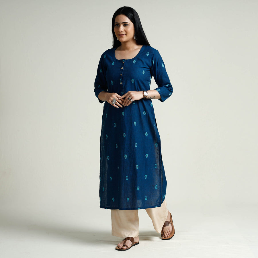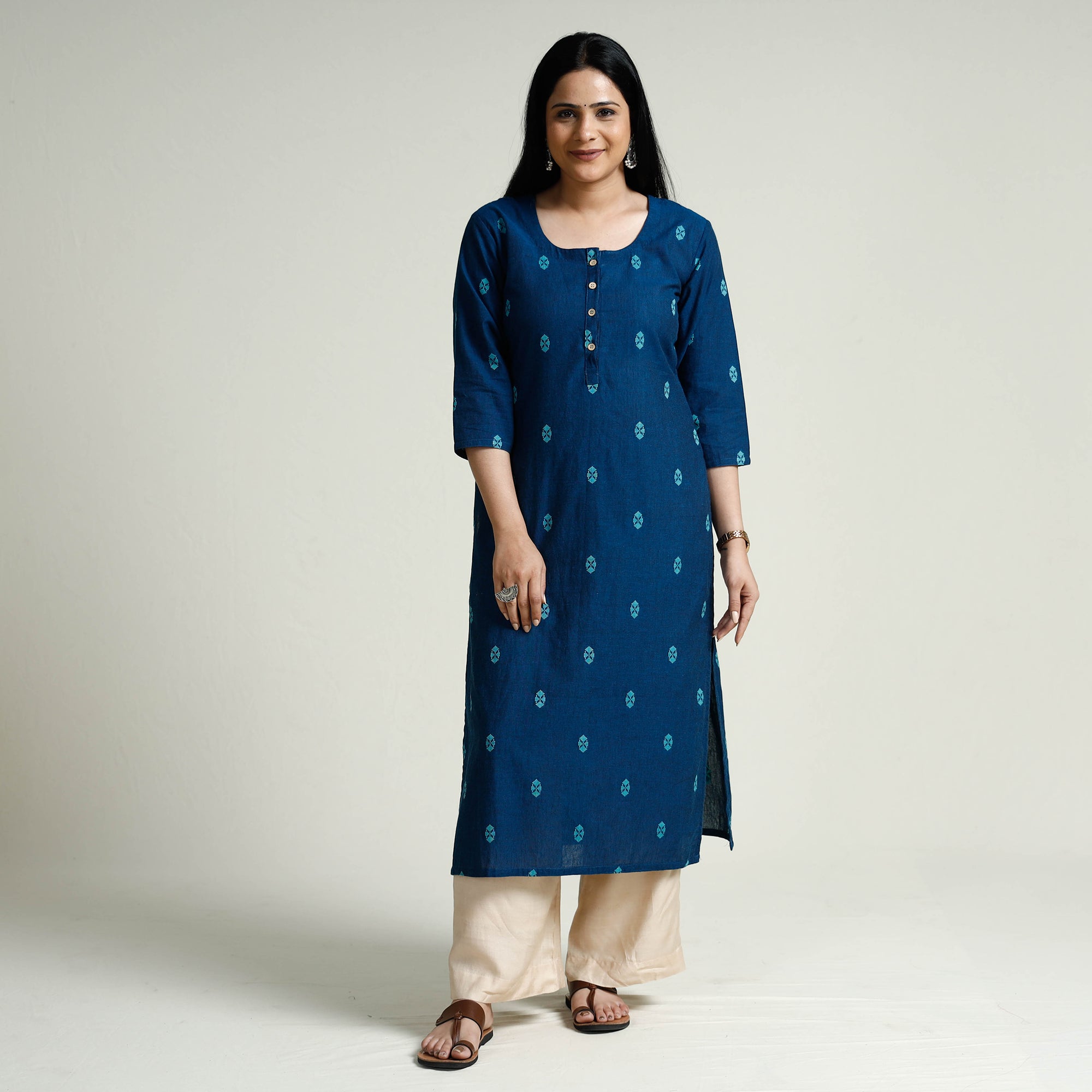 Look and feel beautiful in this uniquely designed jacquard cotton long Kurta. This long Kurta is crafted from fine quality cotton fabric, ensuring a comfortable feel against your skin. It boasts exquisite jacquard weave designs, adding a touch of elegance to your ensemble. The Kurta also features a convenient one-side pocket, perfect for carrying small essentials. It's an ideal choice for both daily outings and special occasions.
