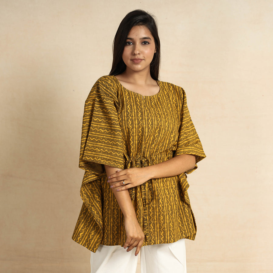 Fine quality akola hand-block printed cotton night suit / loungewear. This suit consists of a short tie-up cotton kaftan paired with an elasticated pyjama. These cotton night suits are enhanced by beautiful hand-block prints. This outfit allows you to move and sleep with ease and comfort and is stylish enough to lounge in! The drawstring, elasticated tie-up waist will give you the freedom to customize the fit to suit your unique shape.