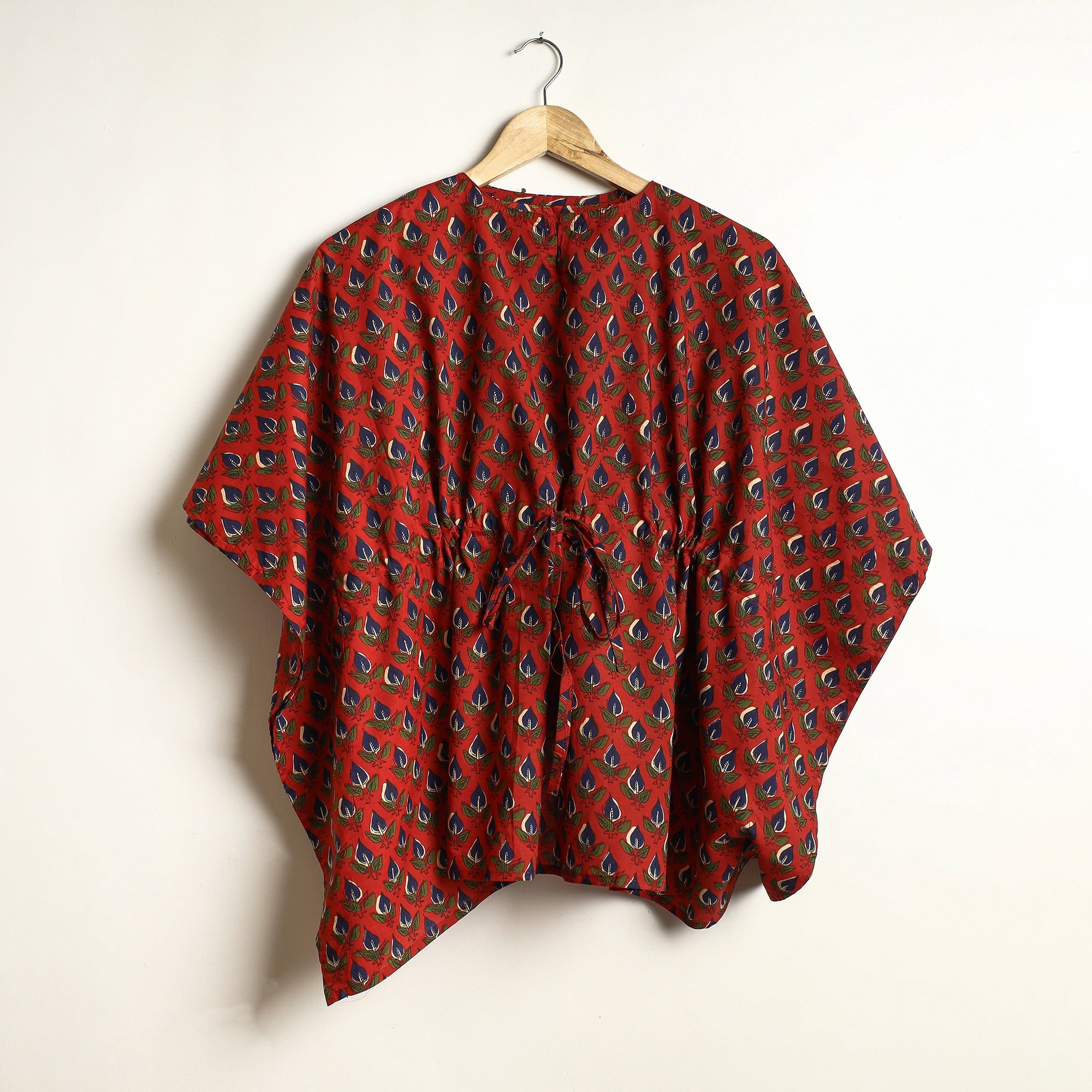 Fine quality bagru hand-block printed cotton night suit / loungewear. This suit consists of a short tie-up cotton kaftan paired with an elasticated pyjama. These cotton night suits are enhanced by beautiful hand-block prints. This outfit allows you to move and sleep with ease and comfort and is stylish enough to lounge in! The drawstring, elasticated tie-up waist will give you the freedom to customize the fit to suit your unique shape.