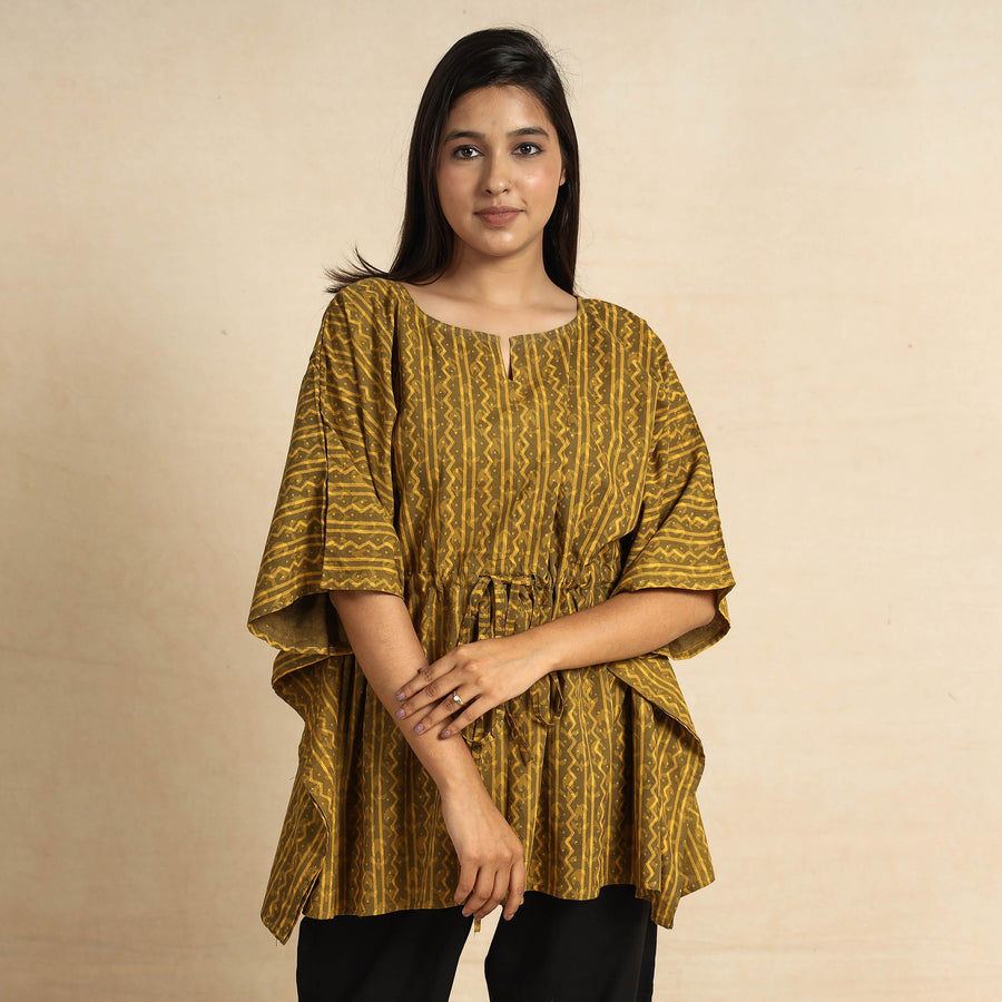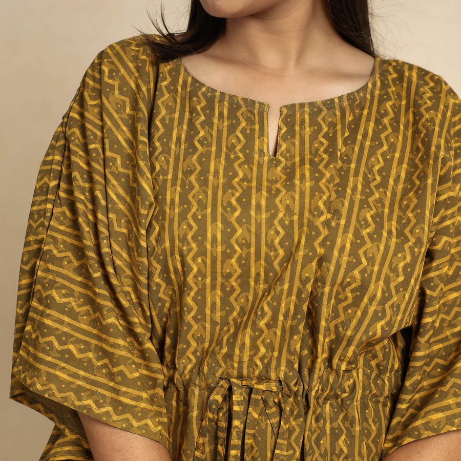 Brown - Hand Block Akola Print Long Kaftan with Tie-Up Waist 14