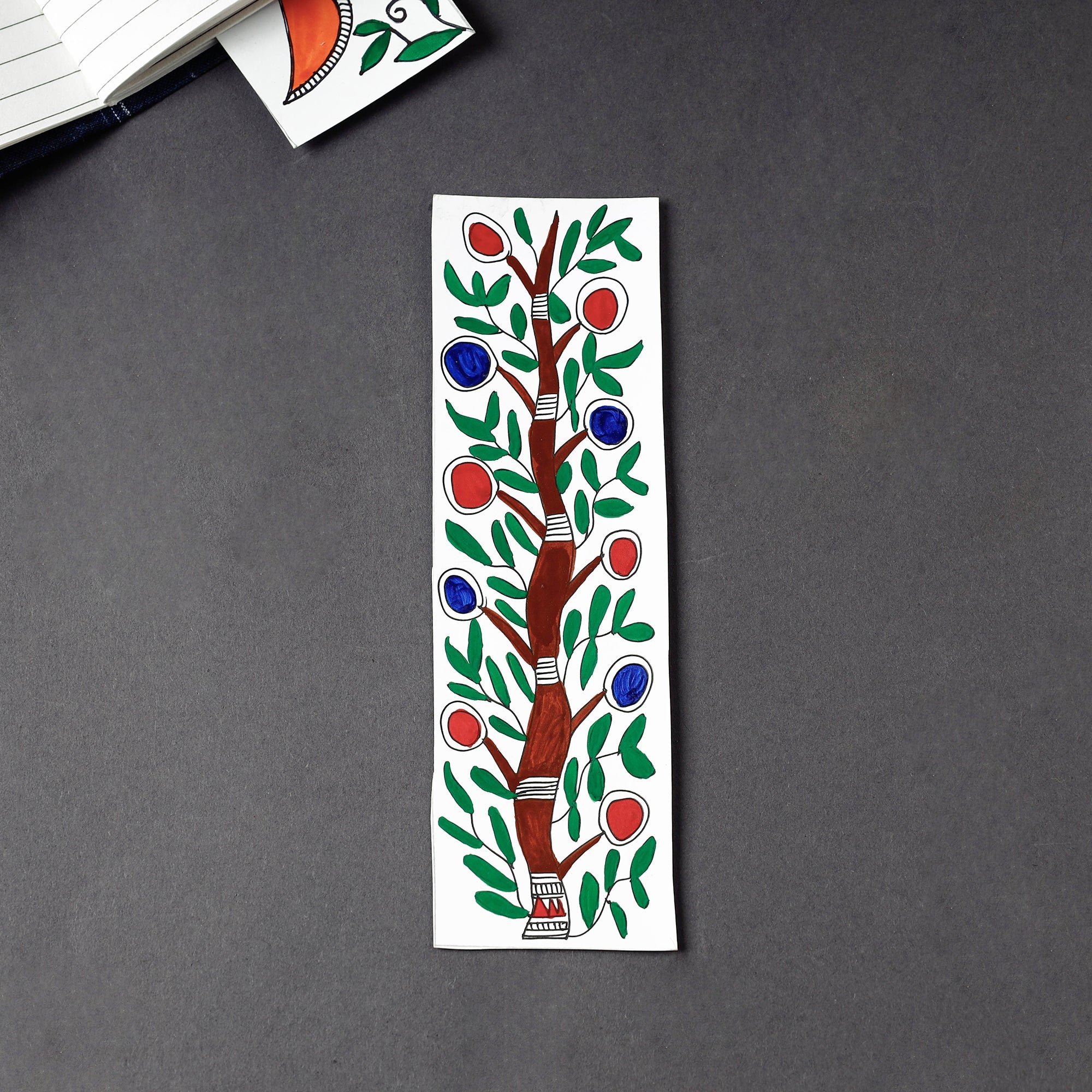 Madhubani handpainted bookmark, with natural colors on handmade paper by master artisan Hira Devi from Bihar. These are priceless collectibles for the discerning decor aficionado and art lover.