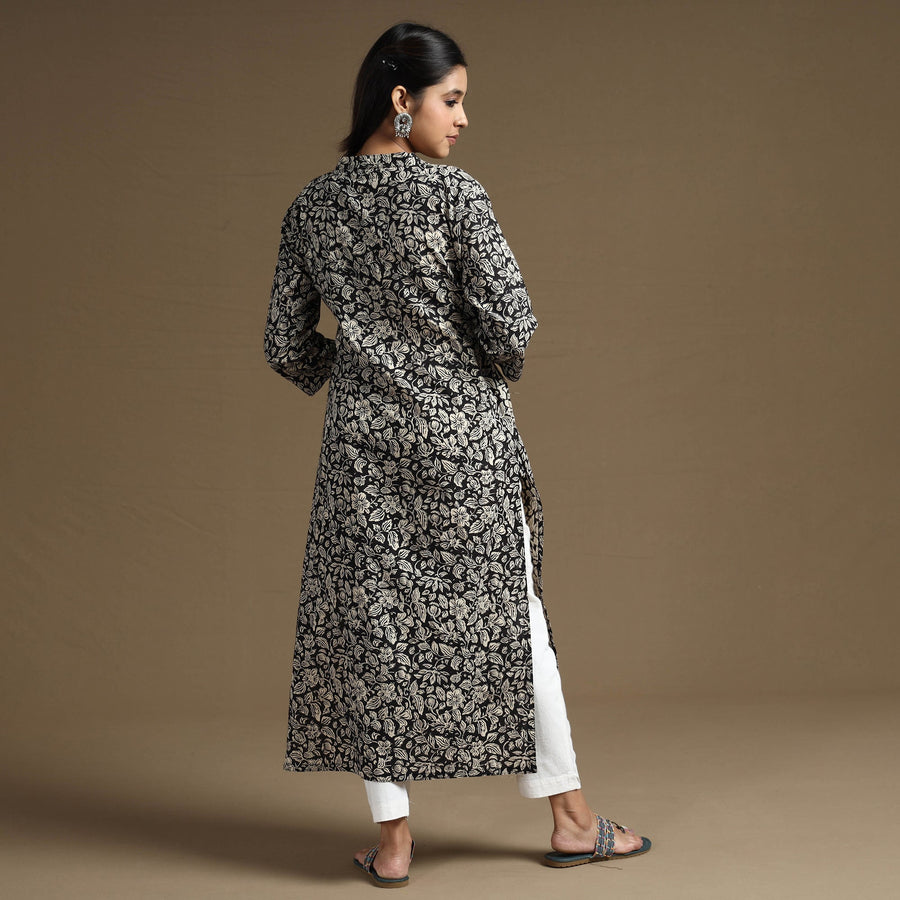 Fine quality bagru hand block printed cotton long Kurta, made using naturally dyed cotton fabric through the traditional mud resist process by using hand carved wooden blocks practised in Bagru, Rajasthan, this Kurta features intricate patterns created by hand-carved wooden blocks. With a side pocket for added convenience, this Kurta is both stylish and practical. Perfect for any occasion, its lightweight cotton fabric ensures comfort all day long.