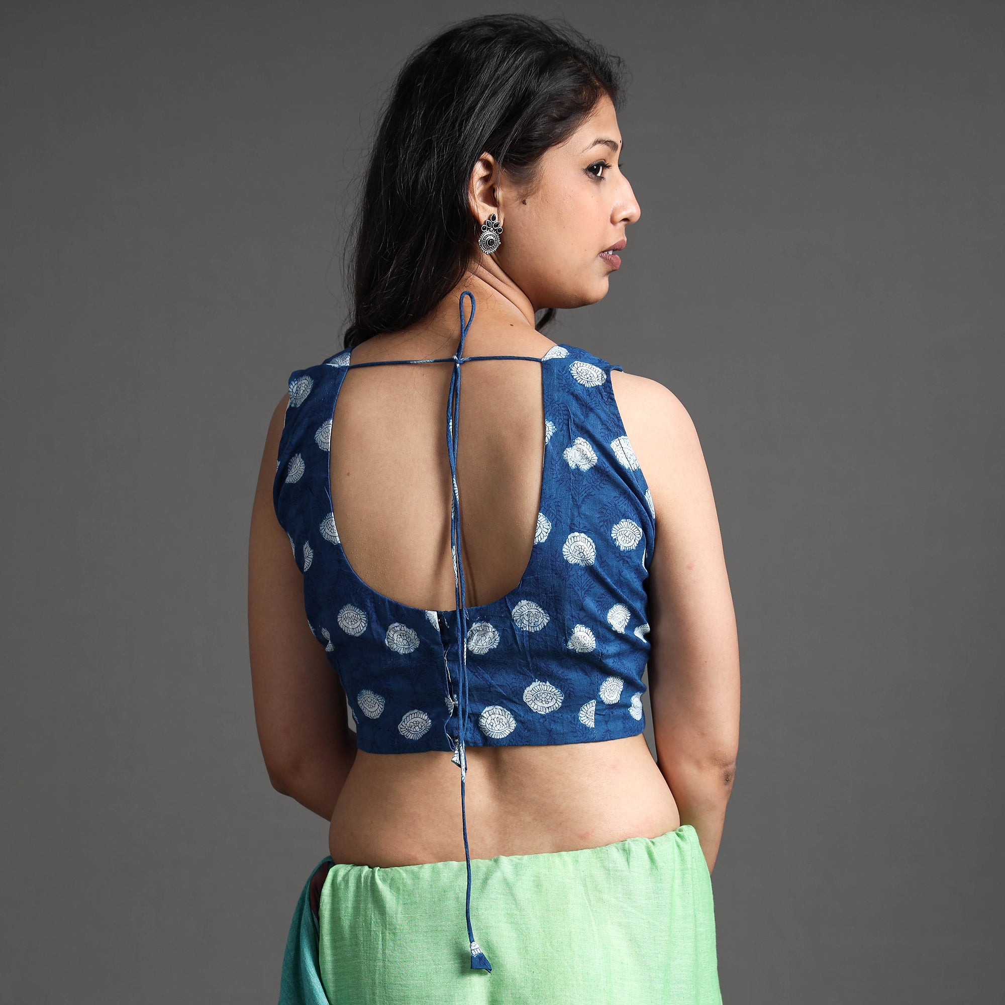 This exquisite indigo bagru dabu hand block printed cotton stitched blouse is crafted with natural dyed cotton fabric, ensuring comfort and breathability throughout the day. It features hook lock adds convenience and allows for easy wear and removal. The sleeveless style offers freedom of movement and a modern look. With its intricate block printed motifs, this blouse adds a touch of cultural charm to your outfit.