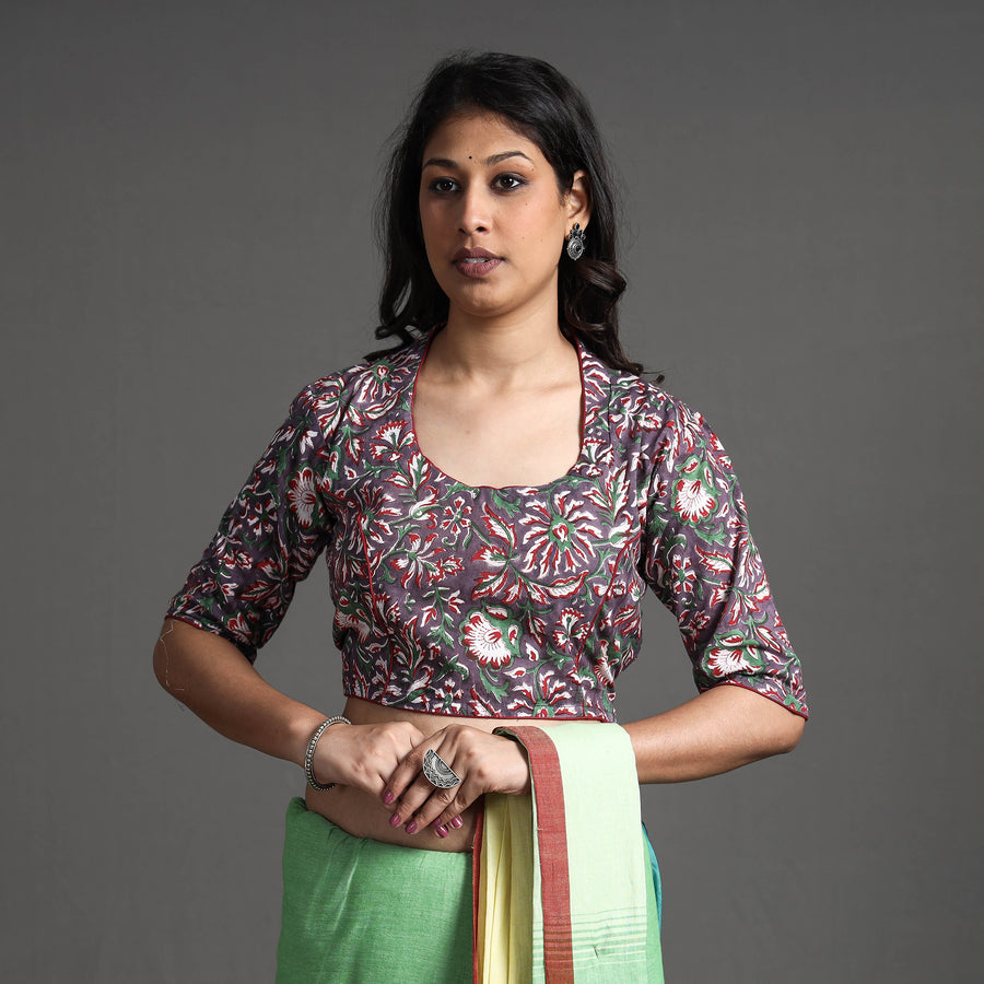 This exquisite sanganeri hand block printed cotton stitched blouse is crafted with fine quality cotton fabric, ensuring comfort and breathability throughout the day. It features elegant half sleeves that provide balanced coverage, making it perfect for any occasion. The hook lock adds convenience and allows for easy wear and removal. With its intricate block printed floral motifs, this blouse adds a touch of cultural charm to your outfit.