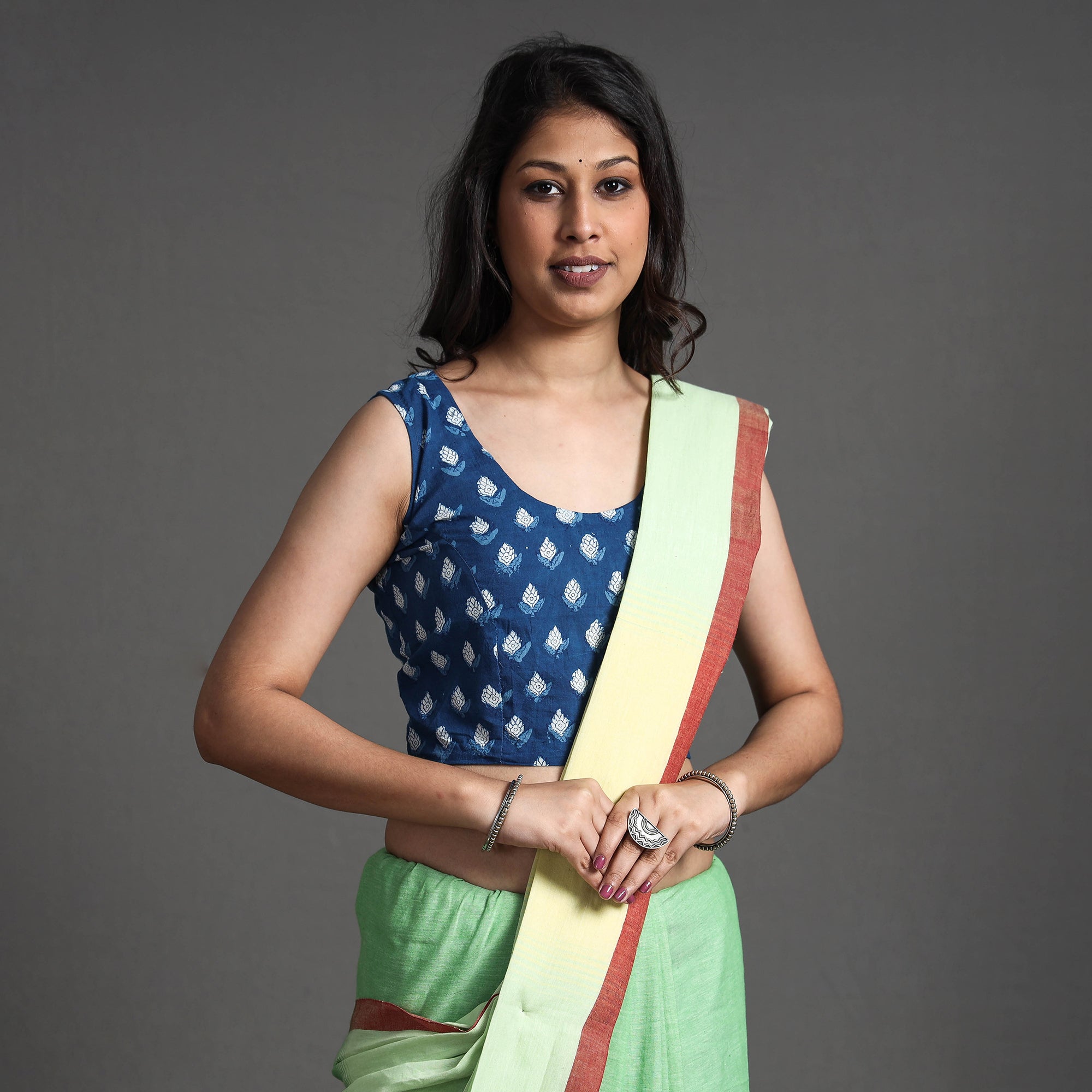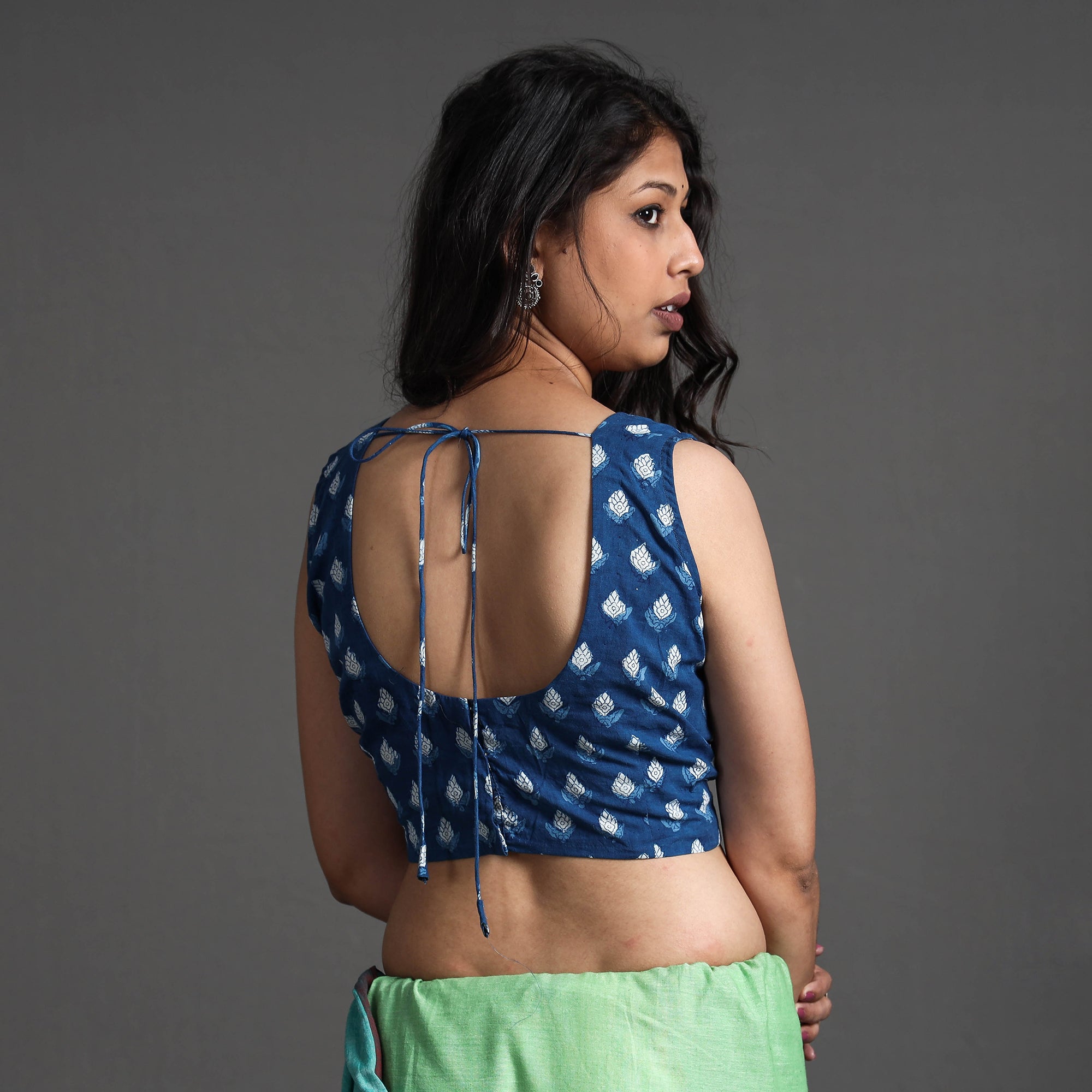 This exquisite indigo bagru dabu hand block printed cotton stitched blouse is crafted with natural dyed cotton fabric, ensuring comfort and breathability throughout the day. It features hook lock adds convenience and allows for easy wear and removal. The sleeveless style offers freedom of movement and a modern look. With its intricate block printed motifs, this blouse adds a touch of cultural charm to your outfit.