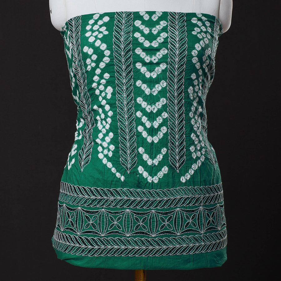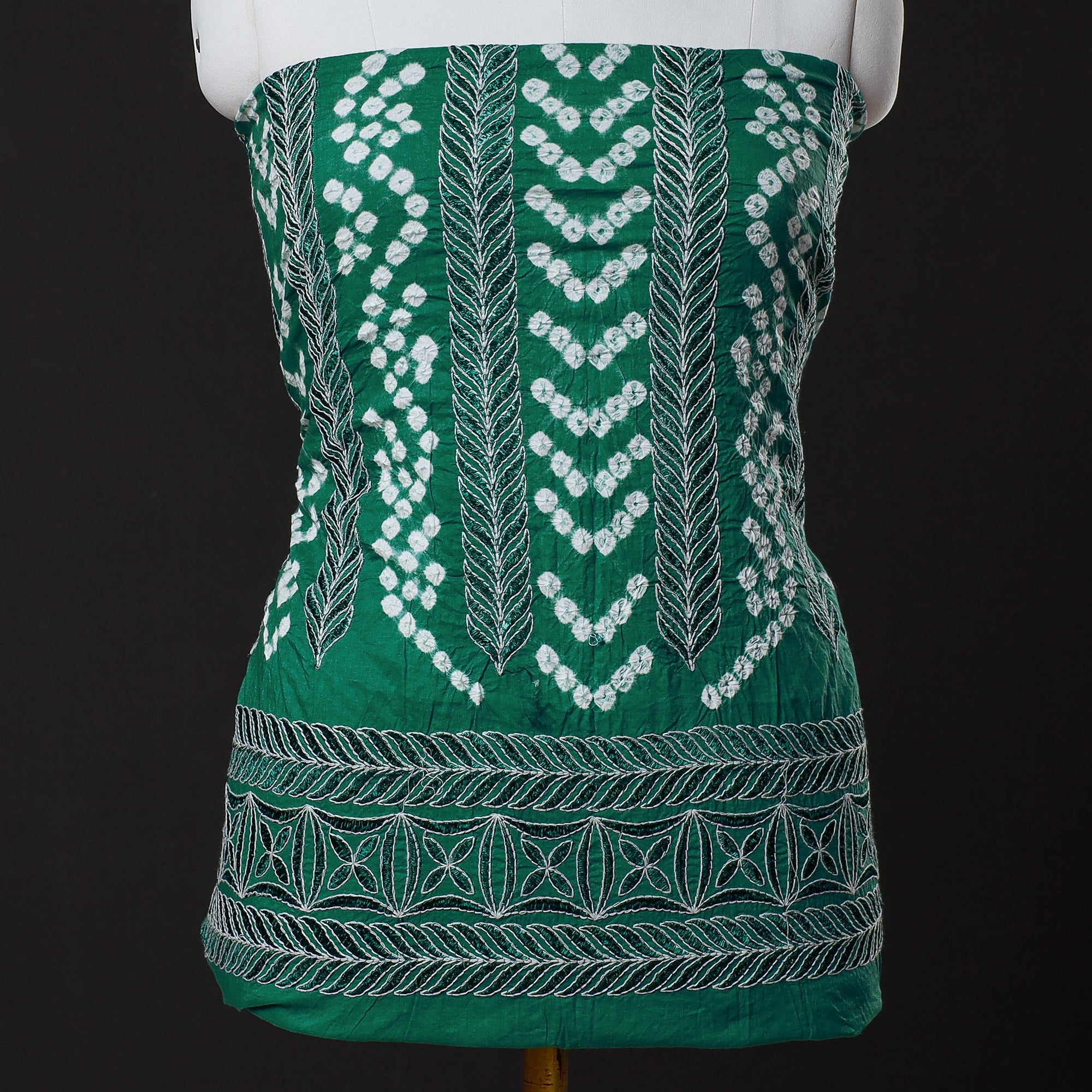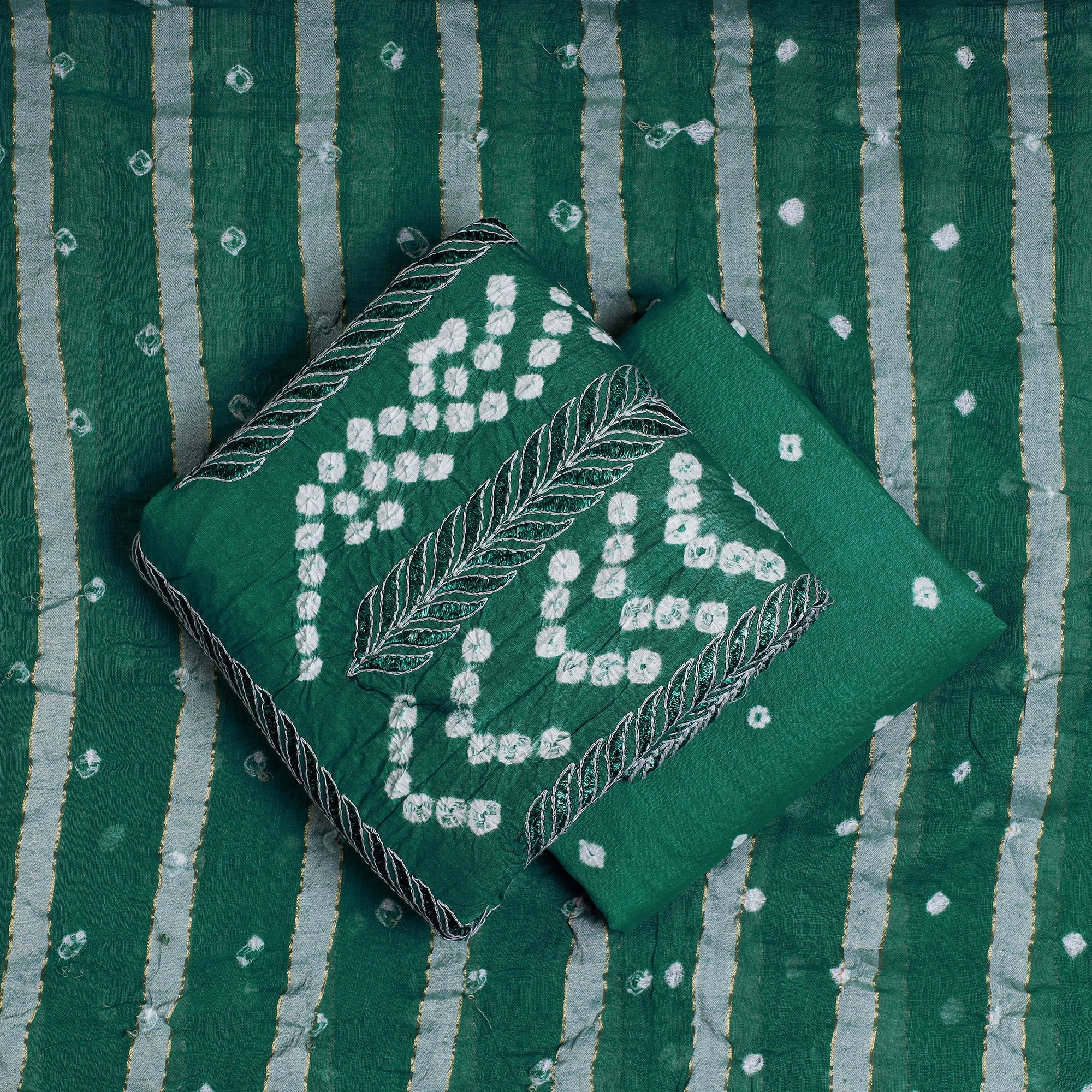 This exquisite kutch bandhani tie-dye 3-piece suit material set is crafted using high-quality materials to ensure both comfort and durability. The kurti is made from cotton; the bottom is made from satin cotton; and the dupatta is made from mul cotton. This suit material features a majestic bandhani pattern, tie-dyed using the traditional technique practised by the artisans of Kutch. This process begins by tightly tying the fabric with a thread at several points, creating patterns and motifs.