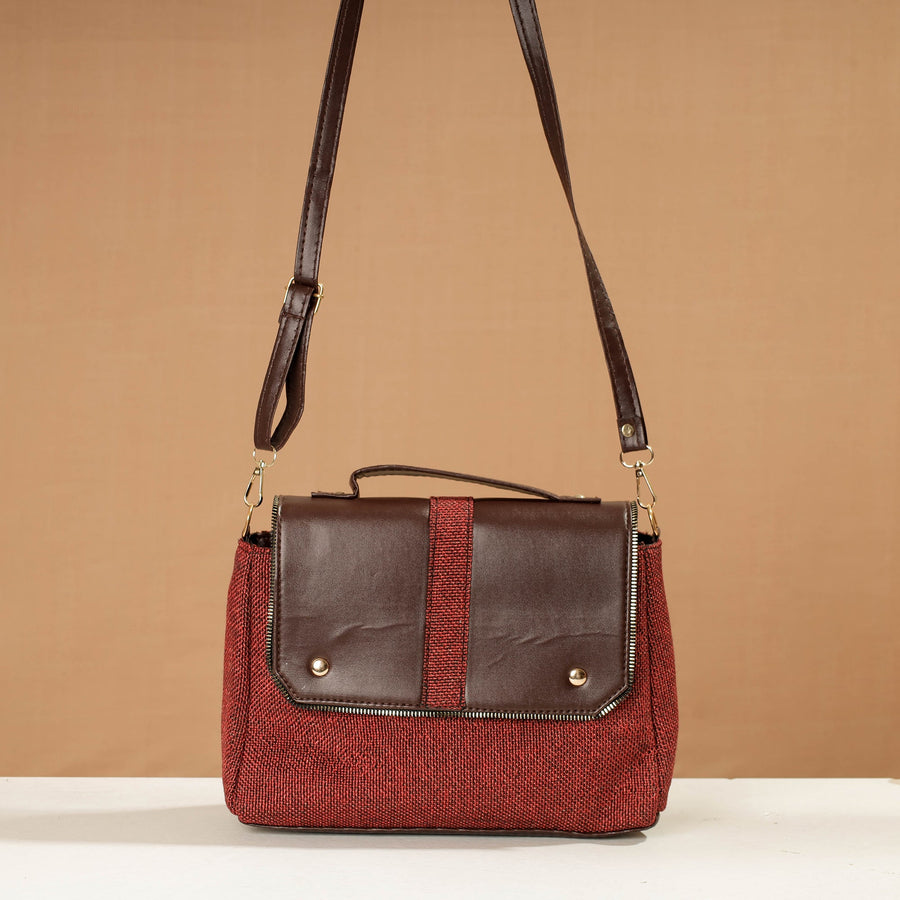 This brown handcrafted sling bag with detachable sling is made from durable and eco-friendly rexine and screen-printed fabric. It has one zipper pocket on the outside. This bag provides ample space for your essentials.