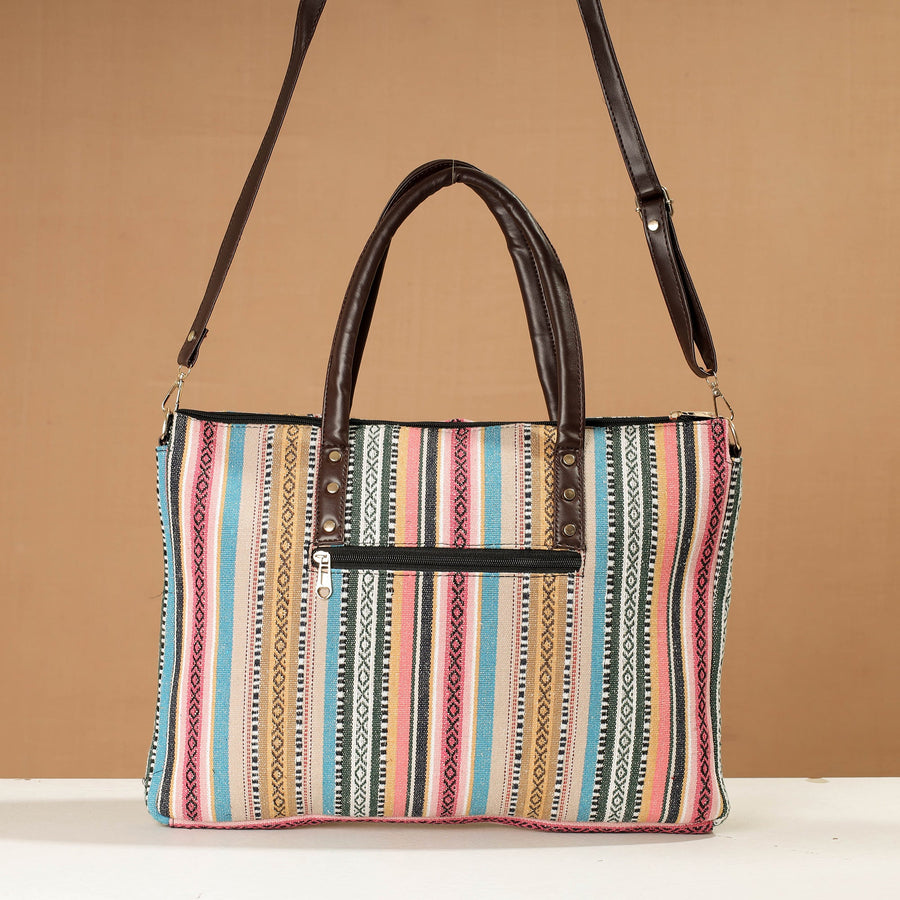 This handcrafted laptop bag with a detachable sling is designed to protect and carry your laptop with ease and style. Made from durable and eco-friendly rexine and screen-printed fabric. With one laptop compartment, one zipper pocket inside, and one zipper or three simple pockets outside, there is ample space to keep your essentials organised. This bag provides ample space for your laptop and other essentials.