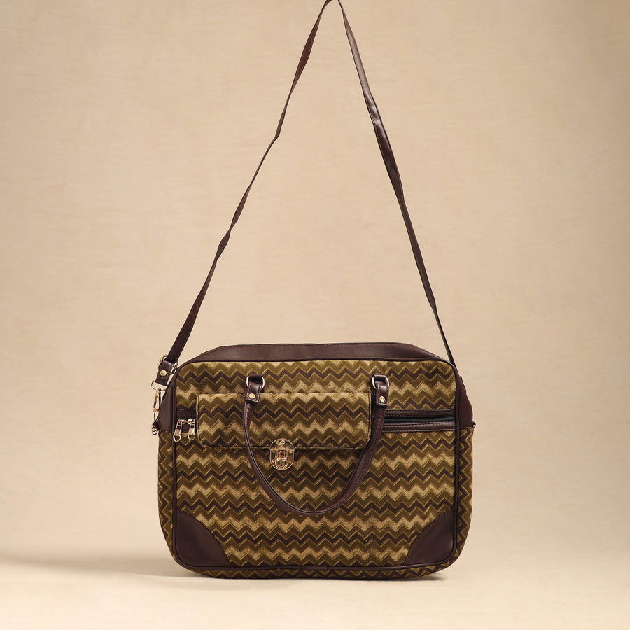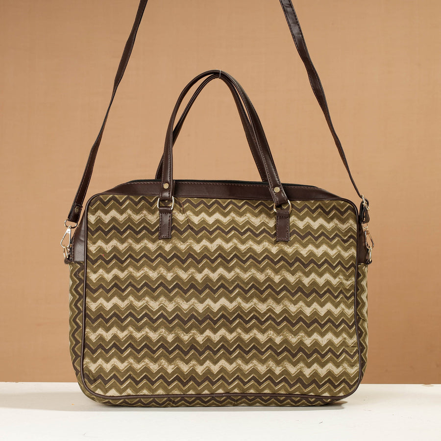 Material This brown handcrafted laptop bag with a detachable sling is designed to protect and carry your laptop with ease and style. Made from durable and eco-friendly rexine and screen-printed fabric. With one laptop compartment and one zipper pocket on the outside, there is ample space to keep your essentials organised. This bag provides ample space for your laptop and other essentials.