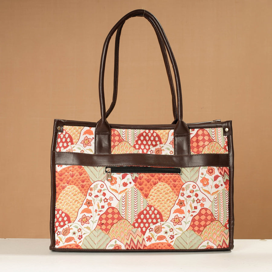 This handcrafted laptop bag with one small clutch is designed to protect and carry your laptop with ease and style. Made from durable and eco-friendly rexine and screen-printed fabric. With one laptop compartment, one simple pocket inside, and one zipper pocket outside, there is ample space to keep your essentials organised. This bag provides ample space for your laptop and other essentials.