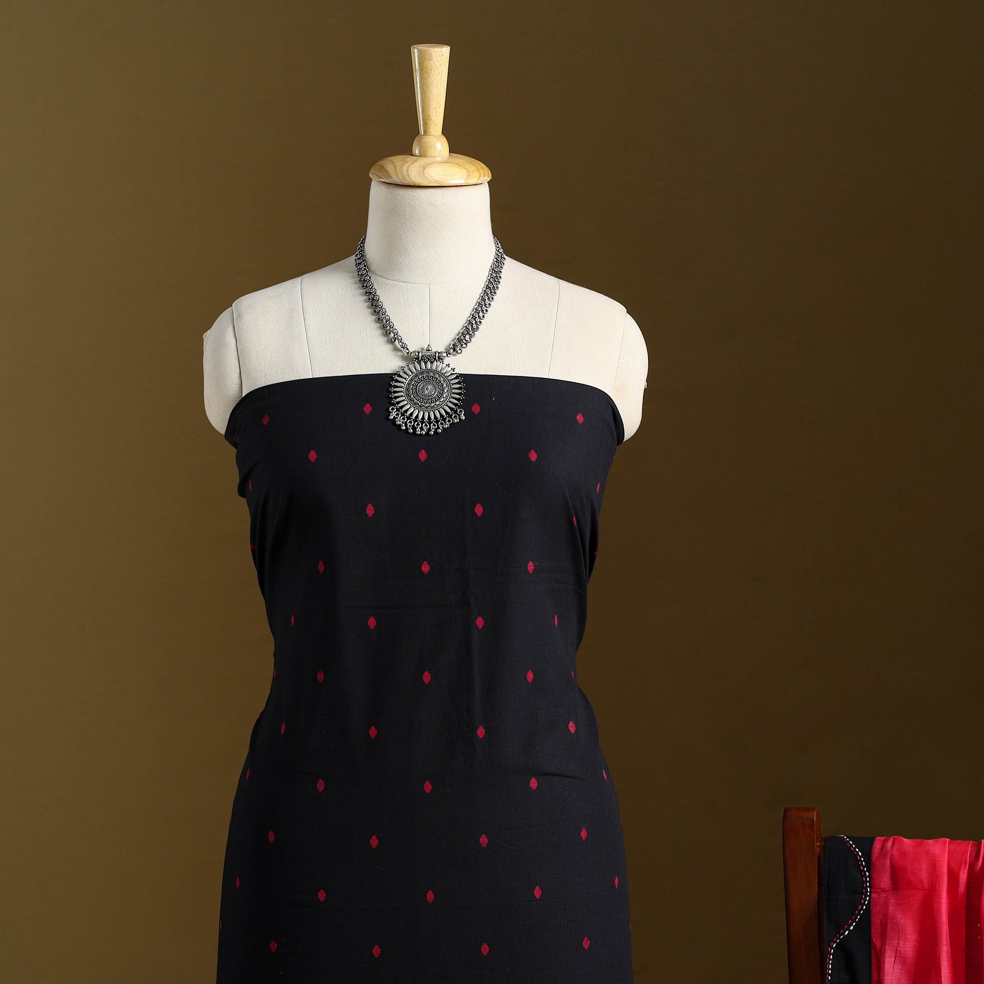 Fine quality black jacquard cotton kurta material with chanderi silk cotton dupatta. The exquisite collection of matching suit materials by Noori Bazaar is perfect for traditional and cultural events such as weddings, festivals, and family gatherings.