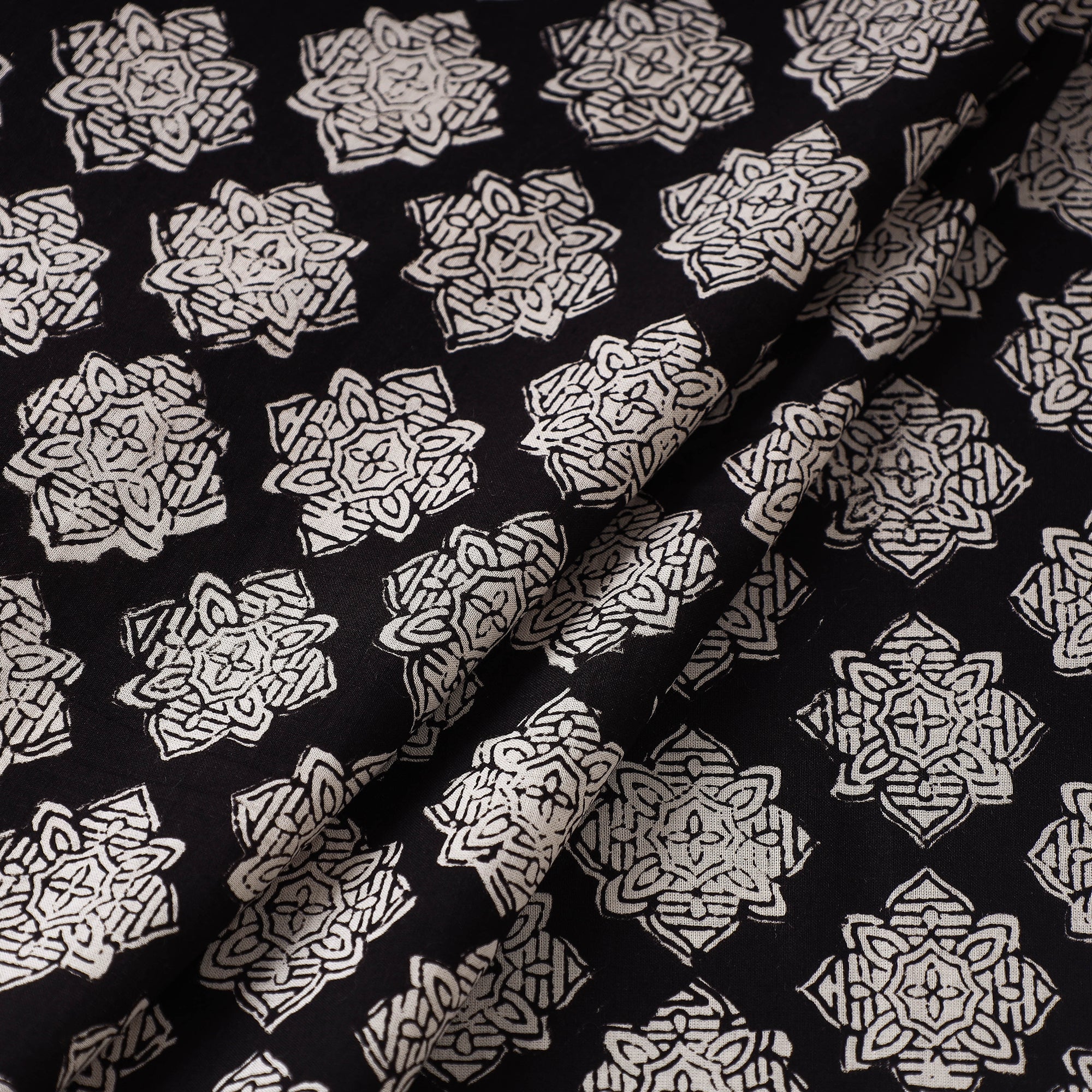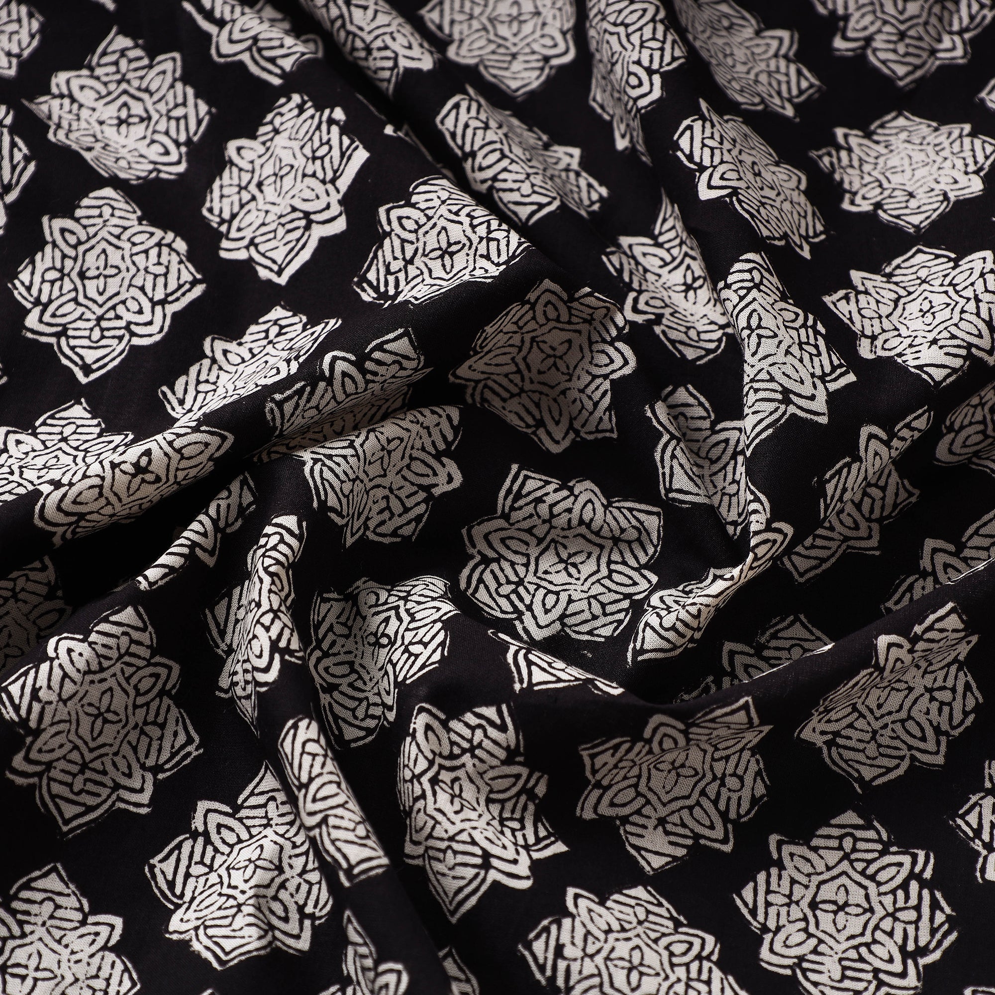• Black Bagru Block Print Natural Dyed Cotton Fabric