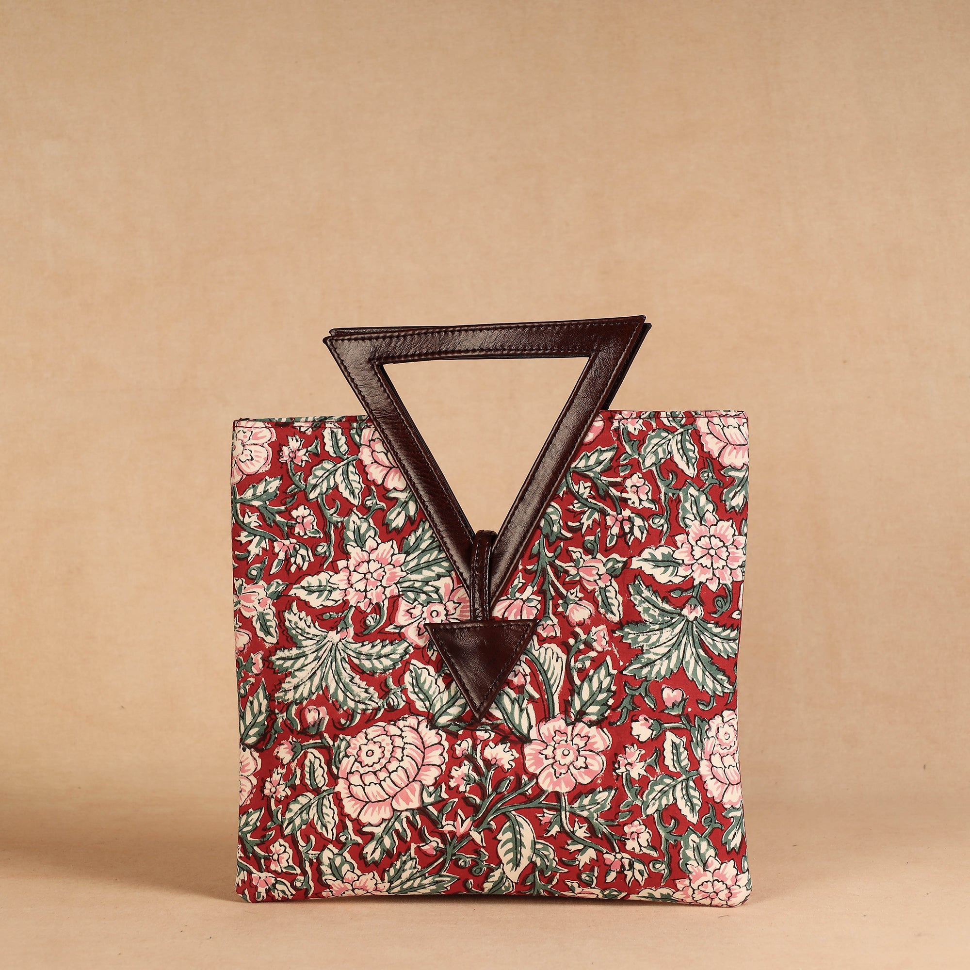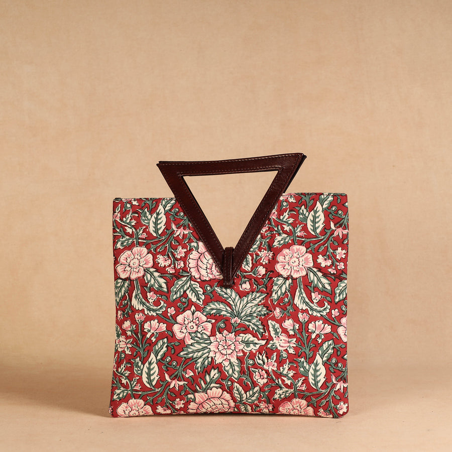 This exquisite red sanganeri printed pureleather hand bag meticulously handcrafted by skilled artisans in Kolkata, West Bengal, this bag showcases the timeless beauty of sanganeri block printed cotton fabric with pureleather handle. With a spacious interior and a thoughtfully designed zipper pocket, it effortlessly accommodates all your essentials while keeping them secure.