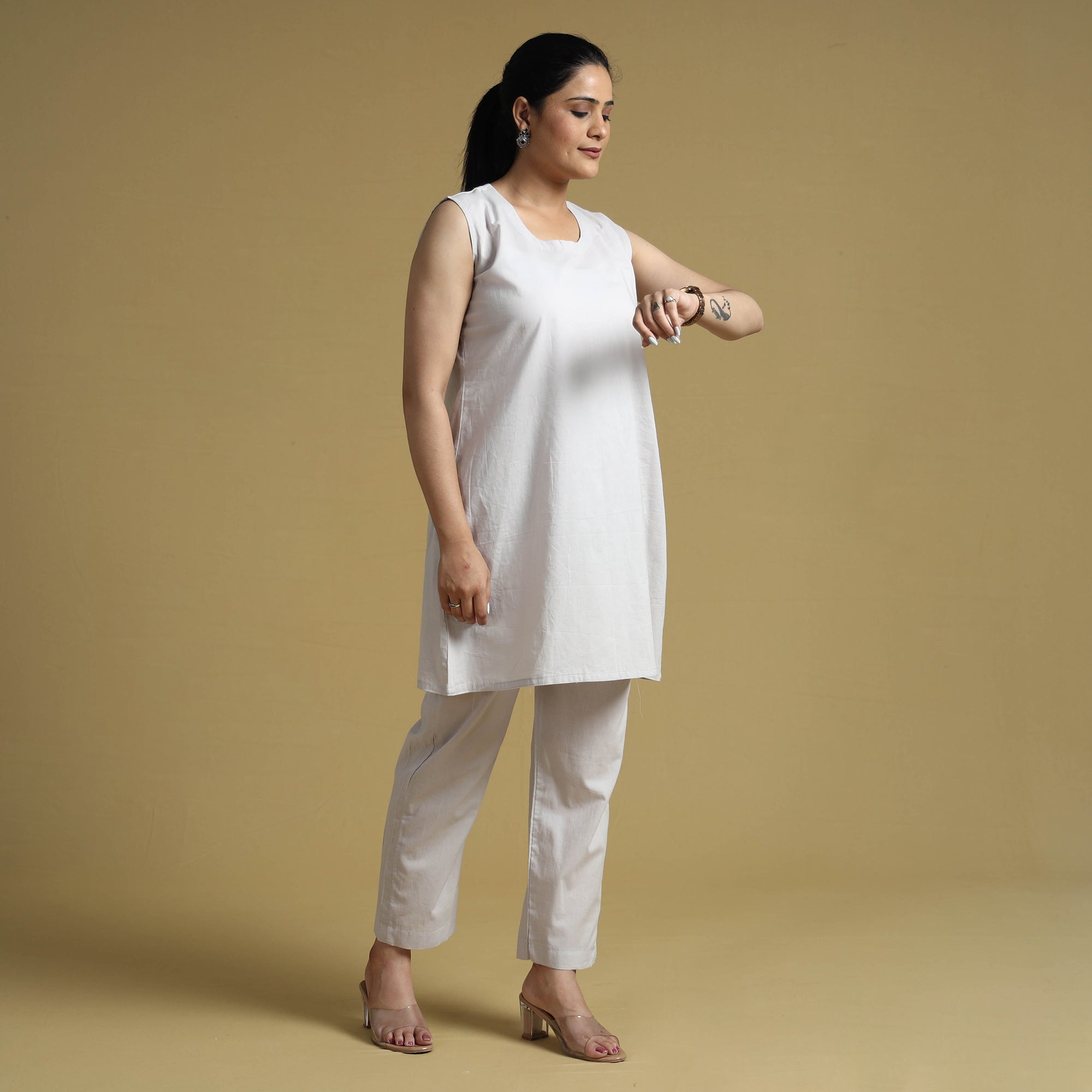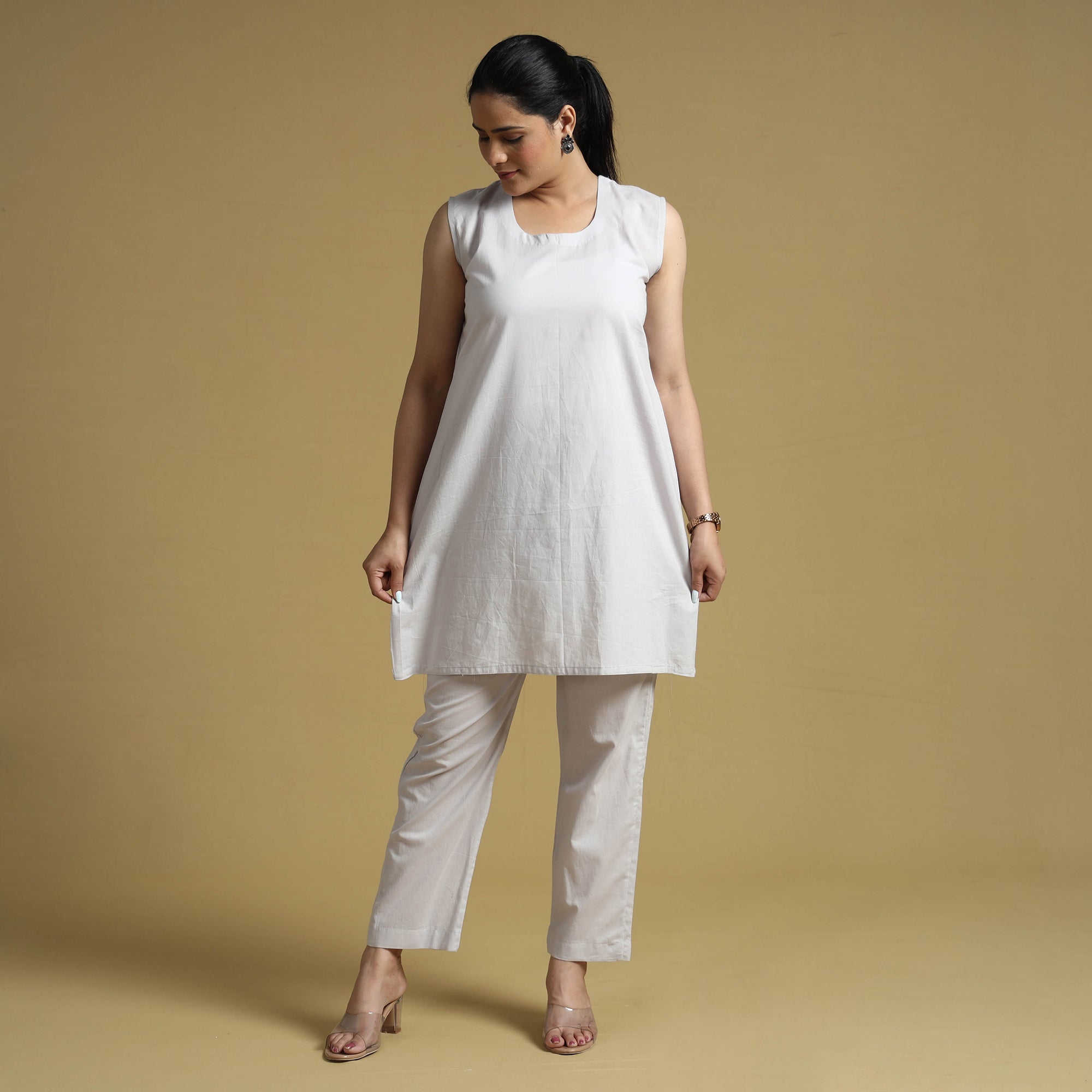 Stay comfortable and stylish in this cotton top and pant co-ord set. Made from plain dyed prewashed cotton fabric. The elasticized waist pant ensures a great fit, while the two side pockets add functionality. The unique design ensure a beautiful and comfortable fit. Stay relaxed and chic all day long in this stunning co-ord set that is perfect for any occasion.
