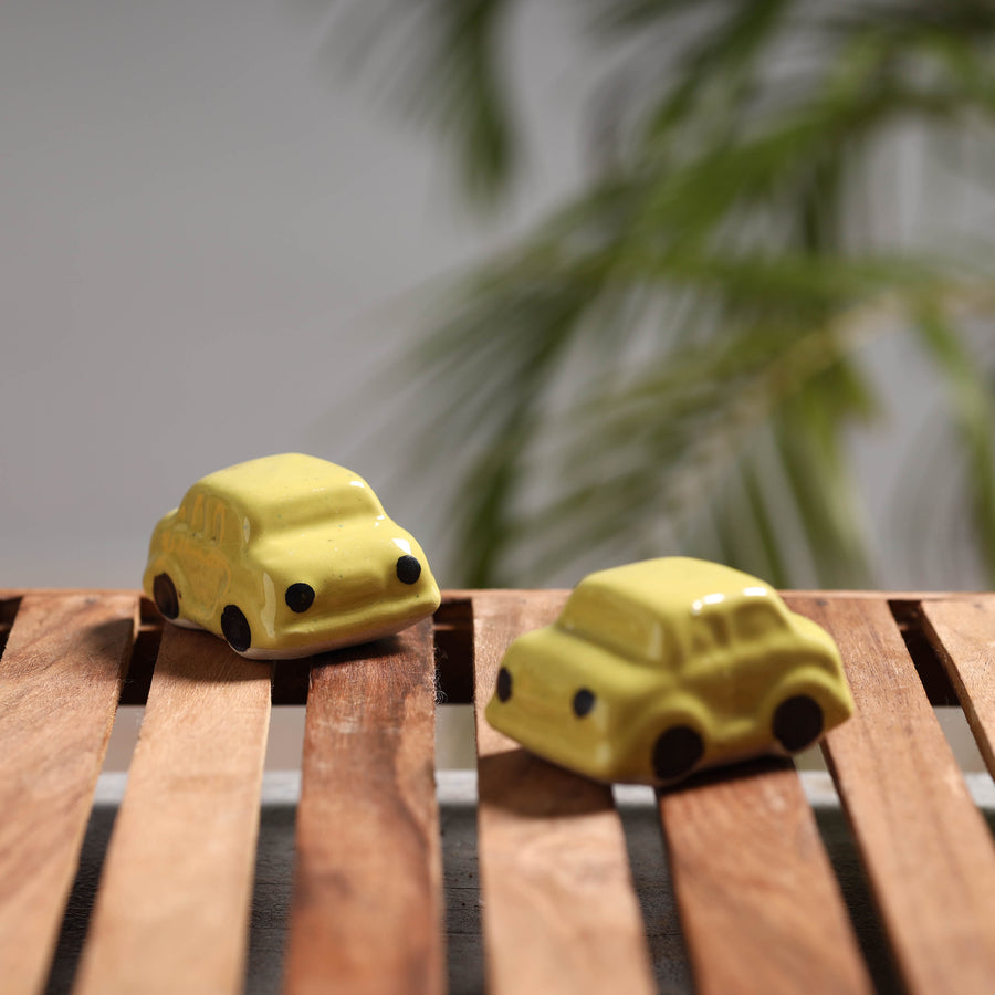 Handcrafted yellow ceramic toy set of two. Discover the joy of play with our handcrafted ceramic toy set. Delightful and safe, these two charming toys are meticulously crafted from high-quality ceramic, providing a unique and artistic twist to traditional playtime. Let your child's imagination soar as they explore the world of creativity and craftsmanship with these beautifully handcrafted toys.