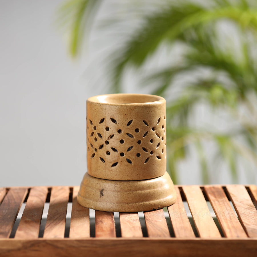 Enhance your space with this handcrafted ceramic electrical aroma diffuser. This beautiful aroma diffuser is simply designed to fill your surroundings with natural fragrance. The product is good for a continuous aroma that helps provide a calming fragrance in your home or office. Simple and stylish, this aroma diffuser works with any decor. It comes with a bulb and an electric wire. Simply add a few drops of your favourite essential oil to the diffuser and experience the soothing and aromatic ambiance it creates. The porous ceramic material allows the fragrance to gently disperse, filling your room with a delightful aroma. Put 5 to 6 drops of aroma oil in the dish at the mouth aroma diffuser with the help of dropper provided in the bottle. -Fill about 80% of the dish with natural water and lit the bulb already present in the holder. - It will start working once the water achieves the desired temperature. Caution: -Keep the oil away from the reach of children and pets. -Avoid eye contacts with oil. -Clean the diffuser with a dry cloth only after it gets cool down.