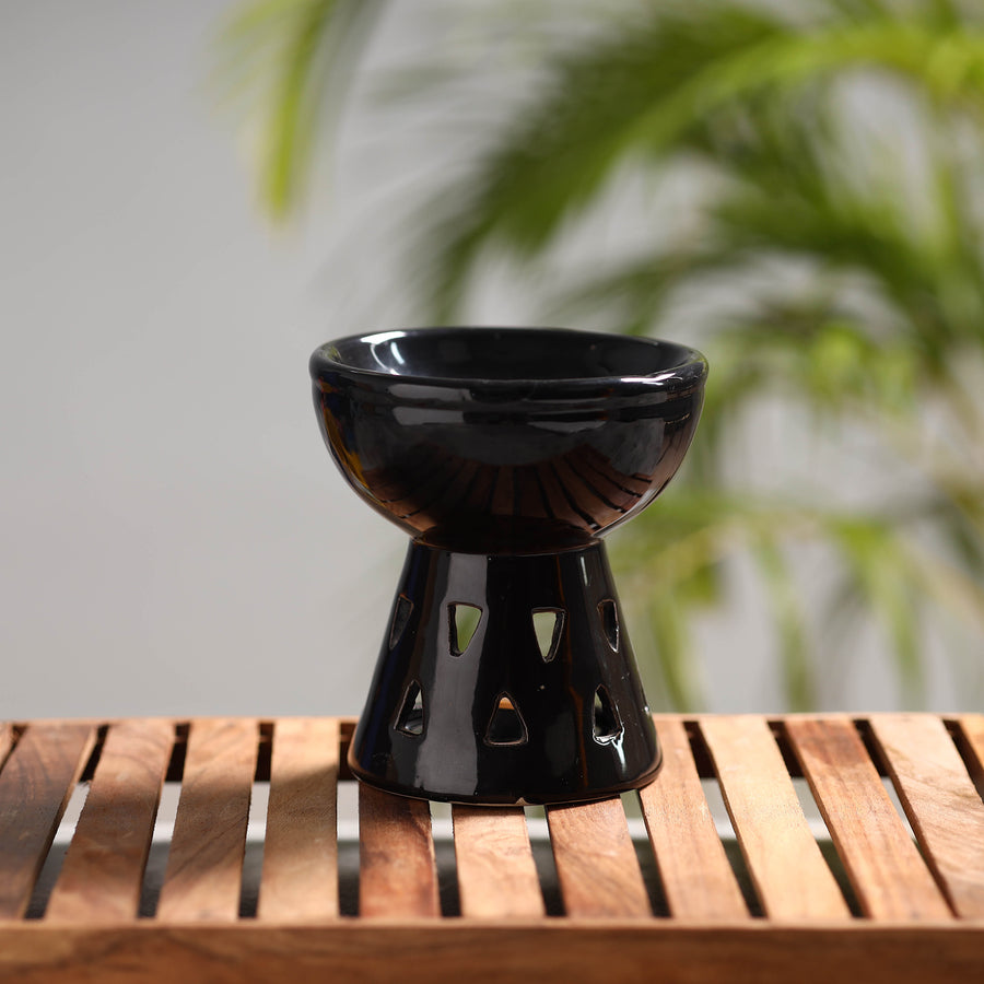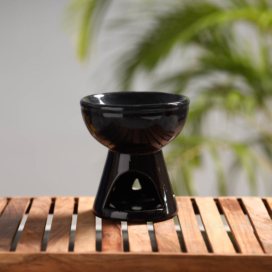 Enhance your space with this handcrafted ceramic aroma diffuser. This beautiful aroma diffuser is simply designed to fill your surroundings with natural fragrance. The product is good for a continuous aroma that helps provide a calming fragrance in your home or office. Simple and stylish, this aroma diffuser works with any decor. Simply add a few drops of your favourite essential oil to the diffuser and experience the soothing and aromatic ambiance it creates. The porous ceramic material allows the fragrance to gently disperse, filling your room with a delightful aroma. Put 5 to 6 drops of aroma oil in the dish at the mouth aroma diffuser with the help of dropper provided in the bottle. -Fill about 80% of the dish with natural water and lit the tealight. - It will start working once the water achieves the desired temperature. Caution: -Keep the oil away from the reach of children and pets. -Avoid eye contacts with oil. -Clean the diffuser with a dry cloth only after it gets cool down.
