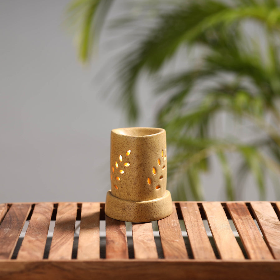 Enhance your space with this handcrafted ceramic electrical aroma diffuser. This beautiful aroma diffuser is simply designed to fill your surroundings with natural fragrance. The product is good for a continuous aroma that helps provide a calming fragrance in your home or office. Simple and stylish, this aroma diffuser works with any decor. It comes with a bulb and an electric wire. Simply add a few drops of your favourite essential oil to the diffuser and experience the soothing and aromatic ambiance it creates. The porous ceramic material allows the fragrance to gently disperse, filling your room with a delightful aroma. Put 5 to 6 drops of aroma oil in the dish at the mouth aroma diffuser with the help of dropper provided in the bottle. -Fill about 80% of the dish with natural water and lit the bulb already present in the holder. - It will start working once the water achieves the desired temperature. Caution: -Keep the oil away from the reach of children and pets. -Avoid eye contacts with oil. -Clean the diffuser with a dry cloth only after it gets cool down.