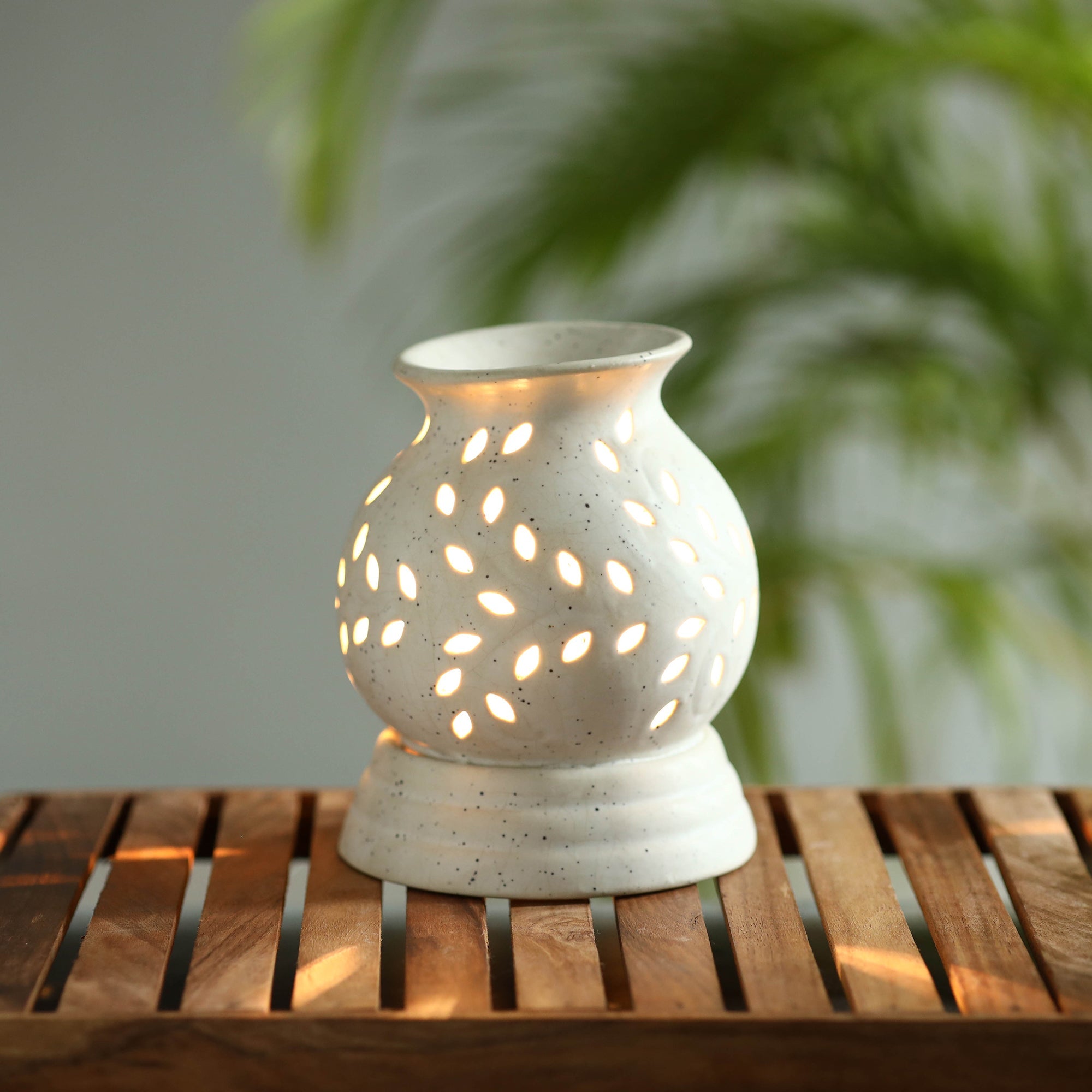 Enhance your space with this handcrafted ceramic electrical aroma diffuser. This beautiful aroma diffuser is simply designed to fill your surroundings with natural fragrance. The product is good for a continuous aroma that helps provide a calming fragrance in your home or office. Simple and stylish, this aroma diffuser works with any decor. It comes with a bulb and an electric wire. Simply add a few drops of your favourite essential oil to the diffuser and experience the soothing and aromatic ambiance it creates. The porous ceramic material allows the fragrance to gently disperse, filling your room with a delightful aroma. Put 5 to 6 drops of aroma oil in the dish at the mouth aroma diffuser with the help of dropper provided in the bottle. -Fill about 80% of the dish with natural water and lit the bulb already present in the holder. - It will start working once the water achieves the desired temperature. Caution: -Keep the oil away from the reach of children and pets. -Avoid eye contacts with oil. -Clean the diffuser with a dry cloth only after it gets cool down.