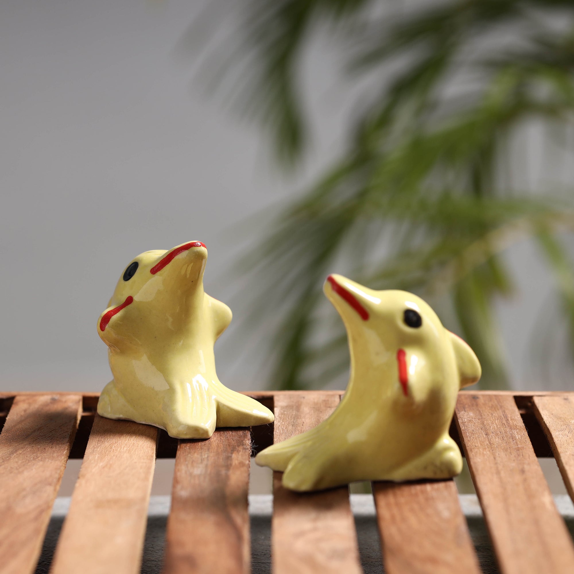 Handcrafted yellow ceramic toy set of two. Discover the joy of play with our handcrafted ceramic toy set. Delightful and safe, these two charming toys are meticulously crafted from high-quality ceramic, providing a unique and artistic twist to traditional playtime. Let your child's imagination soar as they explore the world of creativity and craftsmanship with these beautifully handcrafted toys.