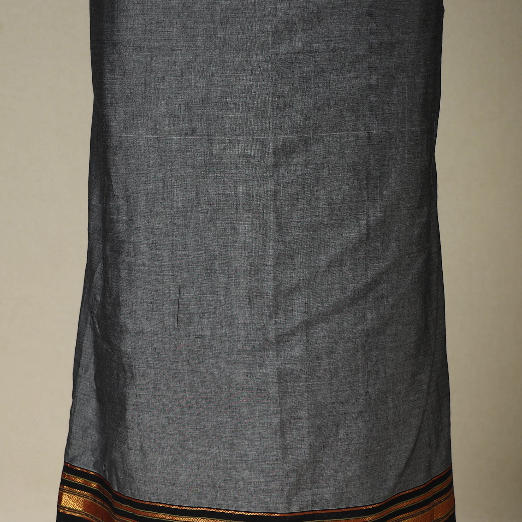 Fine quality grey cotton 3-piece suit material set from Dharwad, Karnataka. This set is a tribute to the rich textile heritage of the region, featuring traditional thread and zari woven border work that adds a touch of sophistication. The set includes a beautifully crafted kurta piece, a matching bottom/salwar piece, and a coordinating dupatta. Crafted with precision and care, this suit material set offers both style and comfort. Whether you're attending a festive occasion or a casual gathering, this ensemble is sure to make a lasting impression.