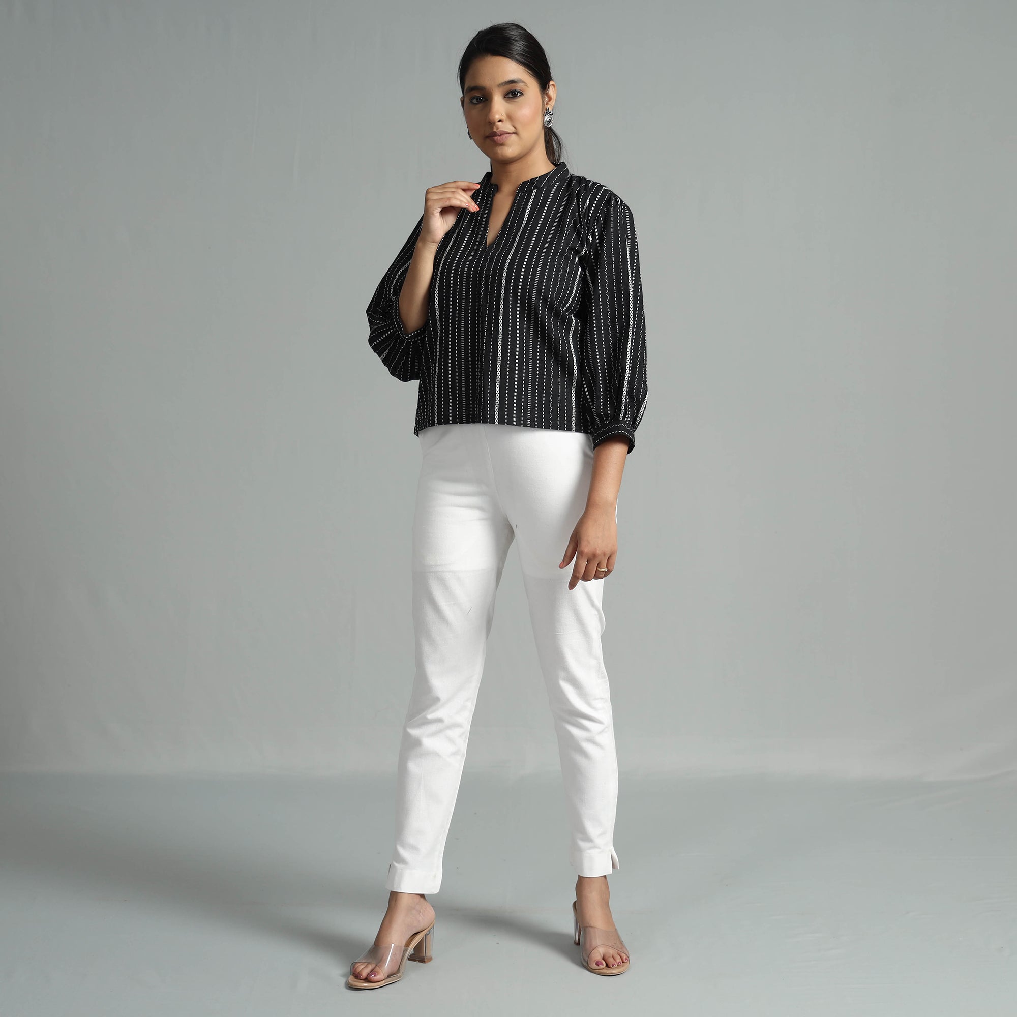 Look and feel beautiful in this uniquely designed black jacquard full sleeve cotton crop top. Made of south pre-washed cotton fabric, this regular-fit crop top is extremely comfortable to wear all day long. This crop top is perfect for your daily outing and for a special occasion.