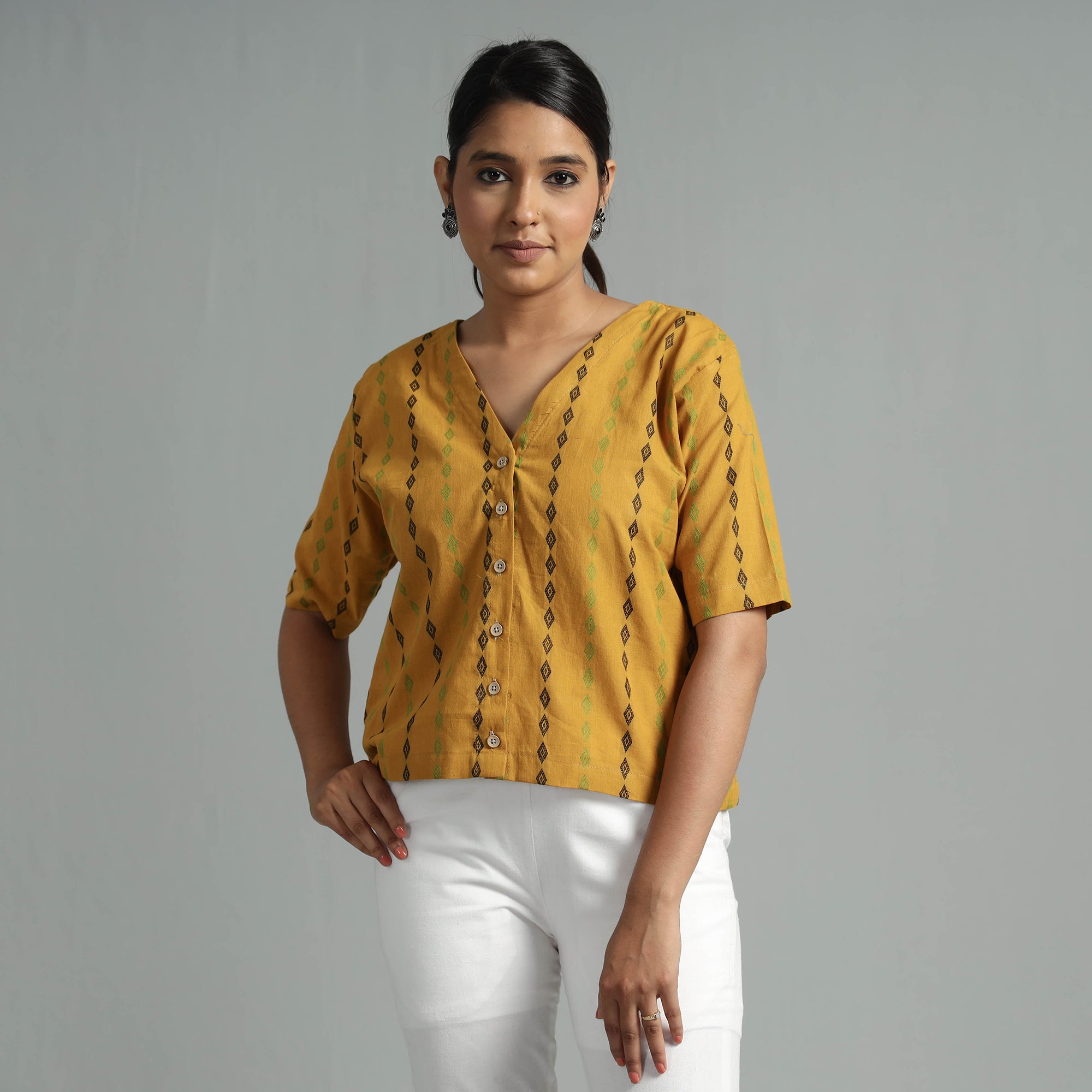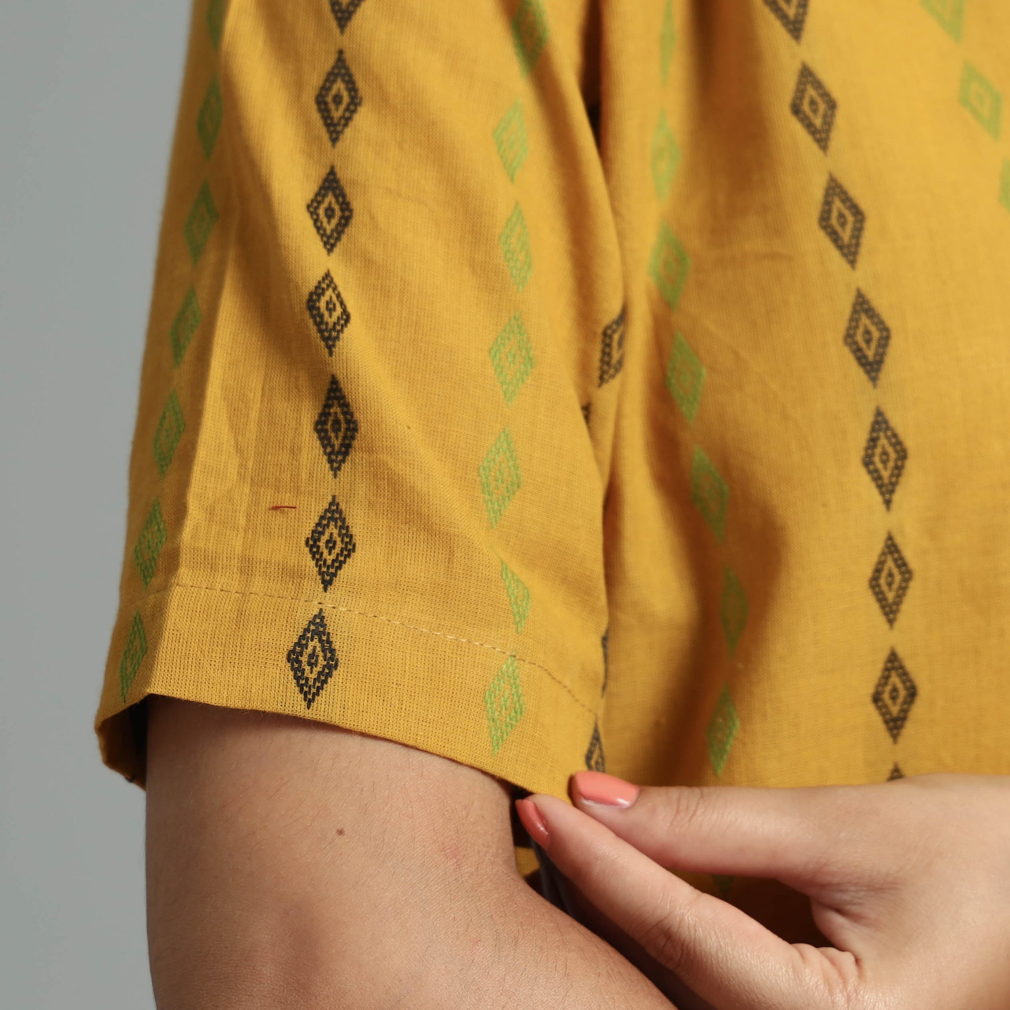 Look and feel beautiful in this uniquely designed yellow jacquard half sleeve cotton crop top. Made of south pre-washed cotton fabric, this regular-fit crop top is extremely comfortable to wear all day long. This crop top is perfect for your daily outing and for a special occasion.