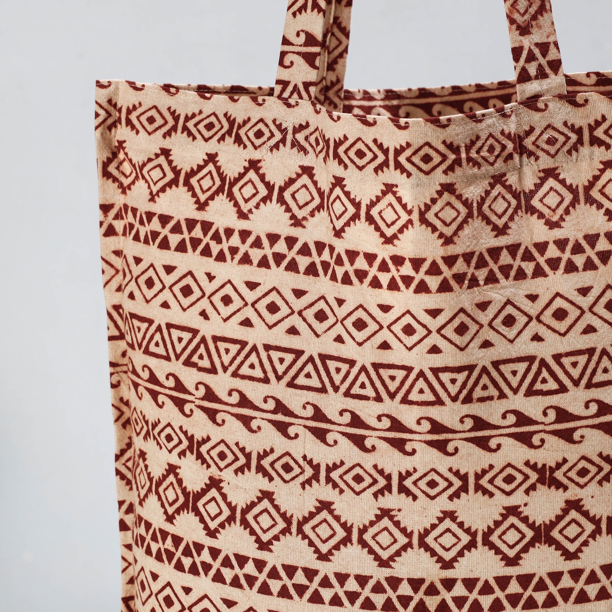 Fine quality red kalamkari handblock printed natural dyed pure cotton multipurpose shopping bag skillfully crafted by the artisans of Pedana, Andhra Pradesh. Showcasing an assortment of hand block printed motifs inspired by traditional kalamkari paintings. Kalamkari is the earliest and more complex techniques of block-printing.