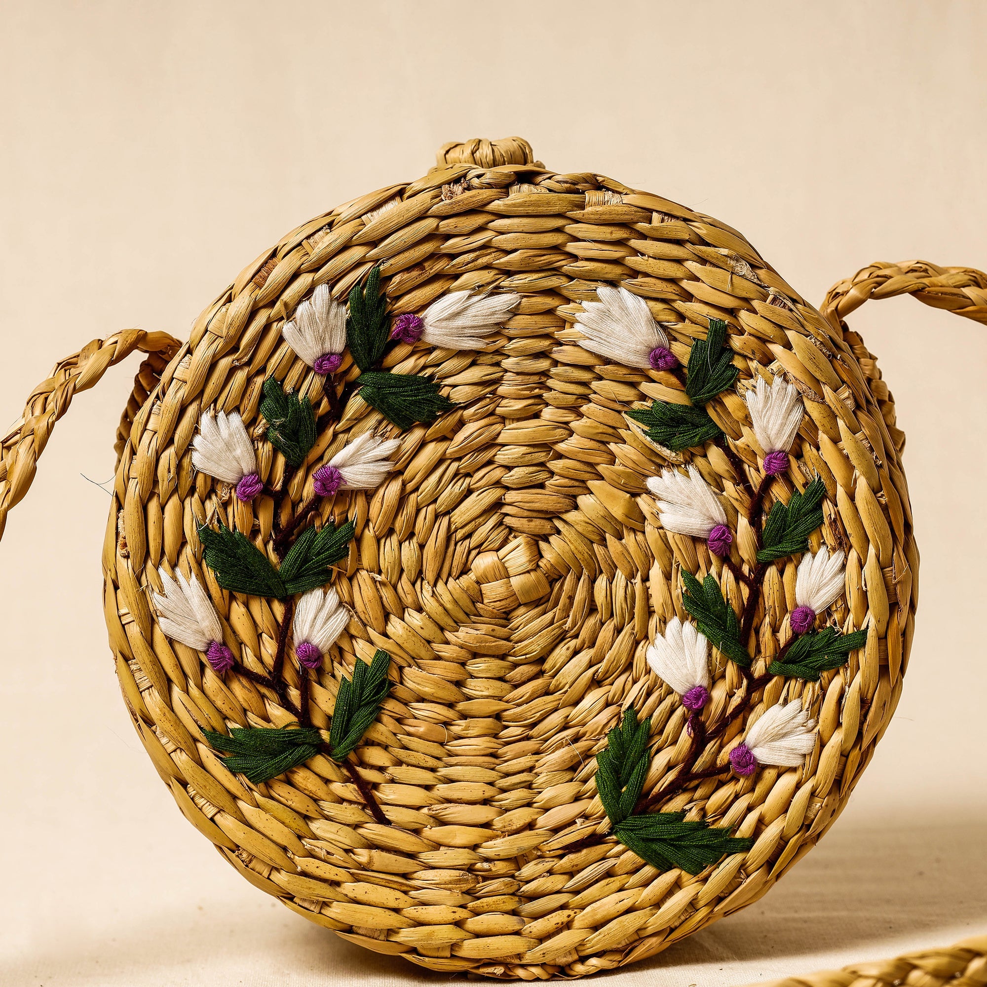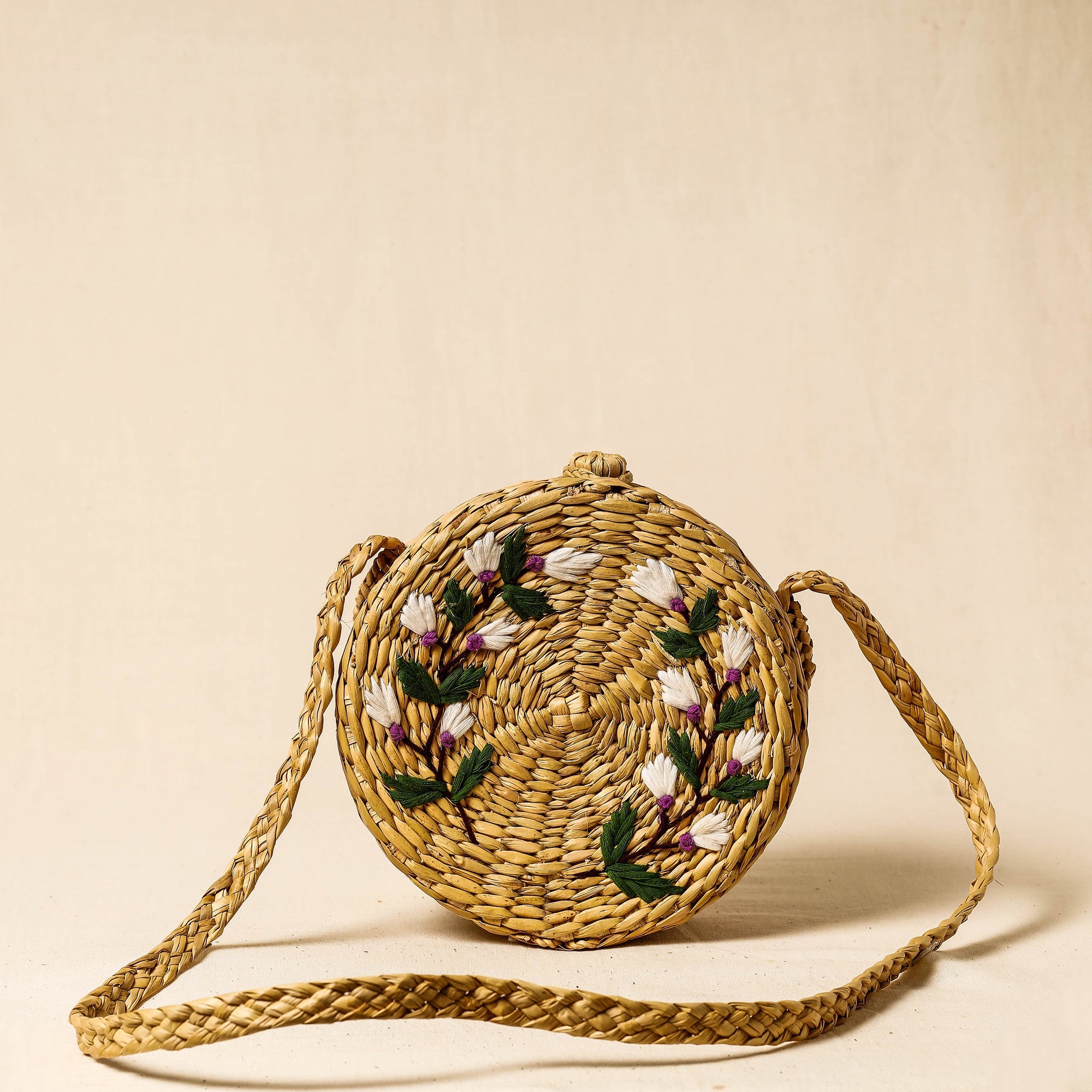 Beige - Handcrafted Natural Water Reed Embroidered Sling Bag 21