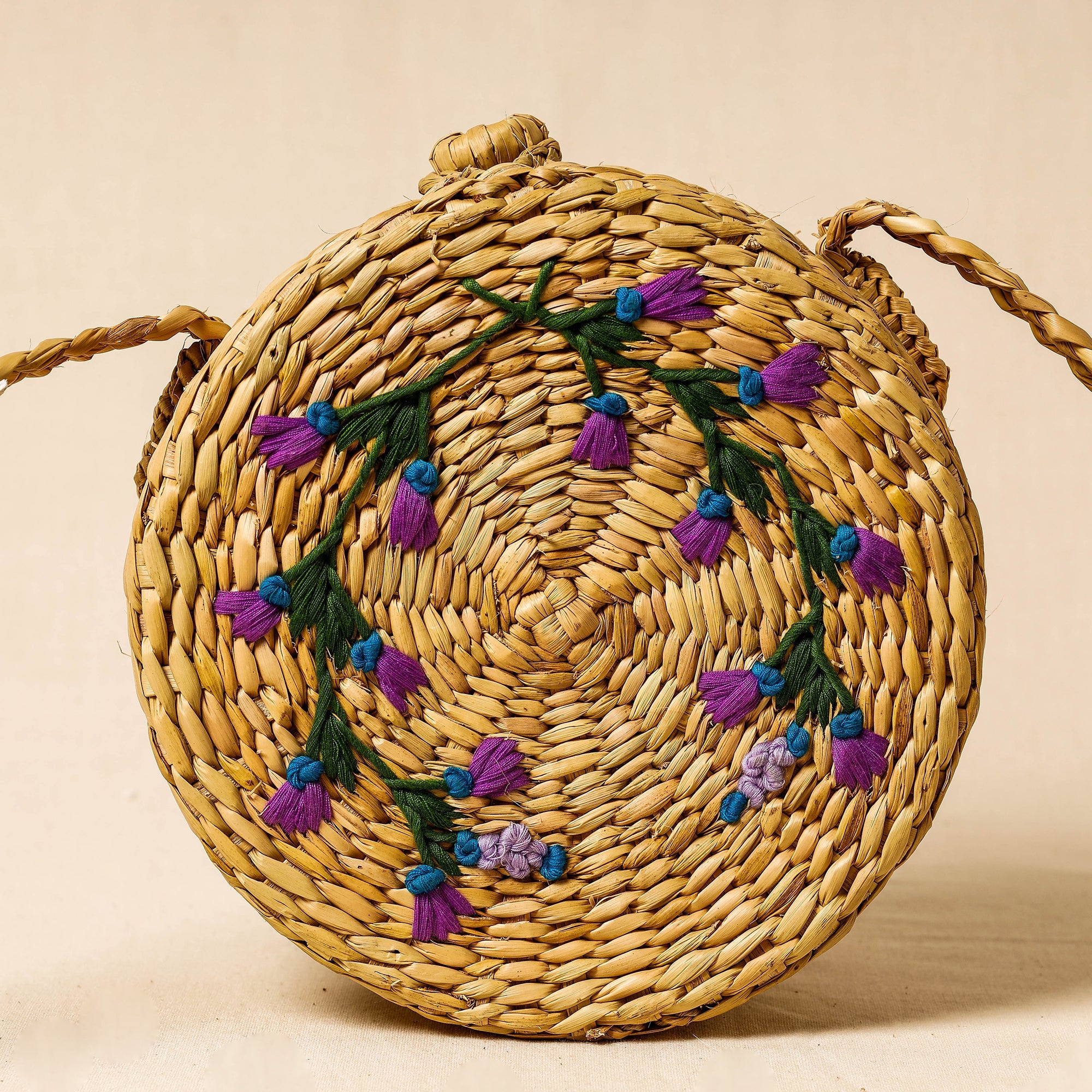 Beige - Handcrafted Natural Water Reed Embroidered Sling Bag
