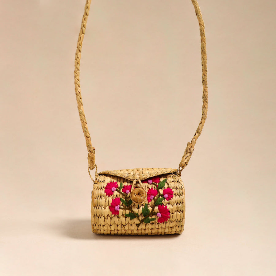 Beige - Handcrafted Natural Water Reed Embroidered Sling Bag 21