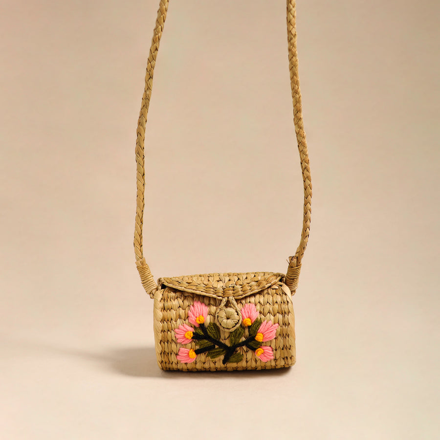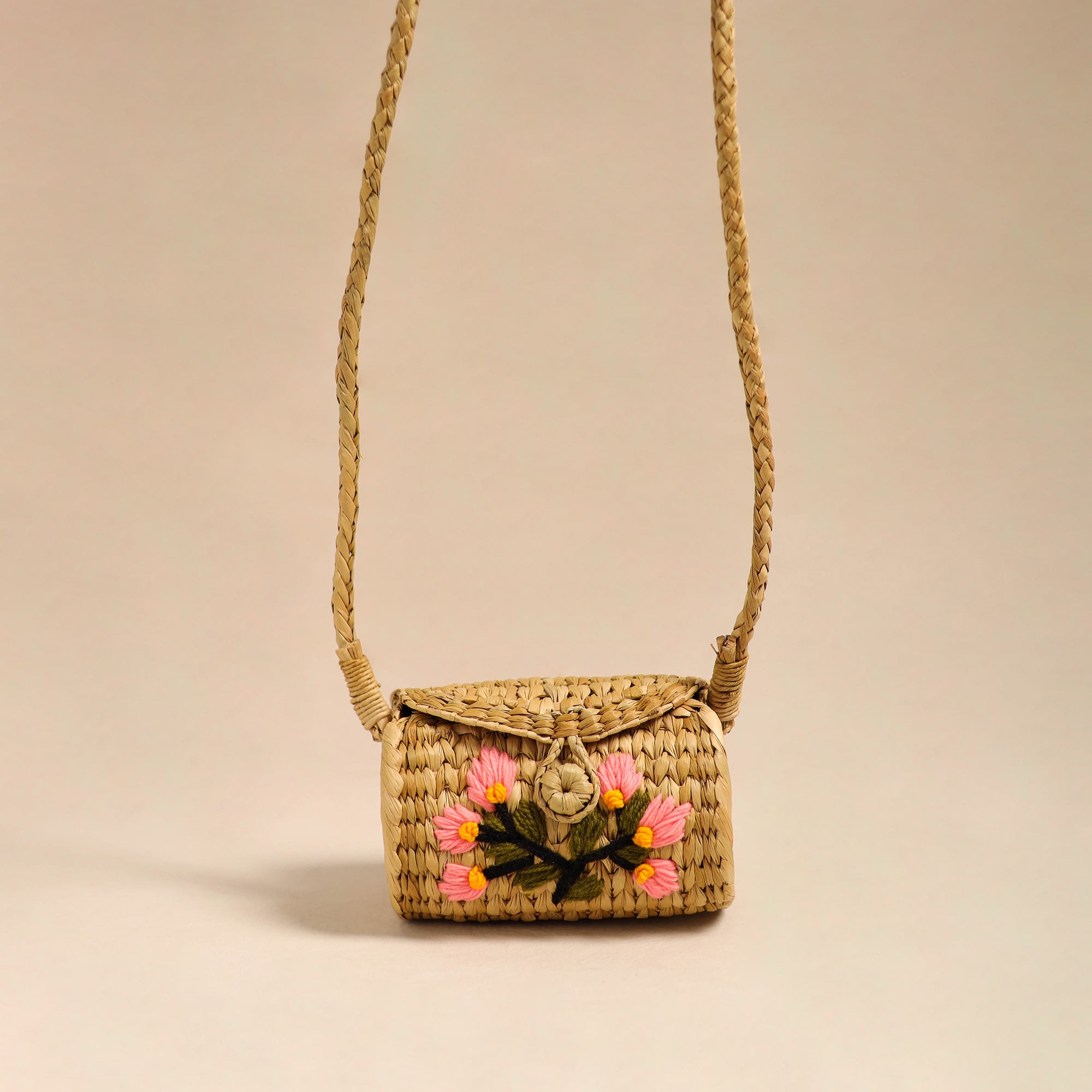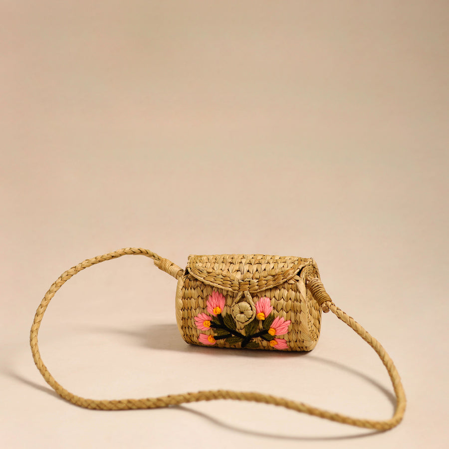 Beige - Handcrafted Natural Water Reed Embroidered Sling Bag 27