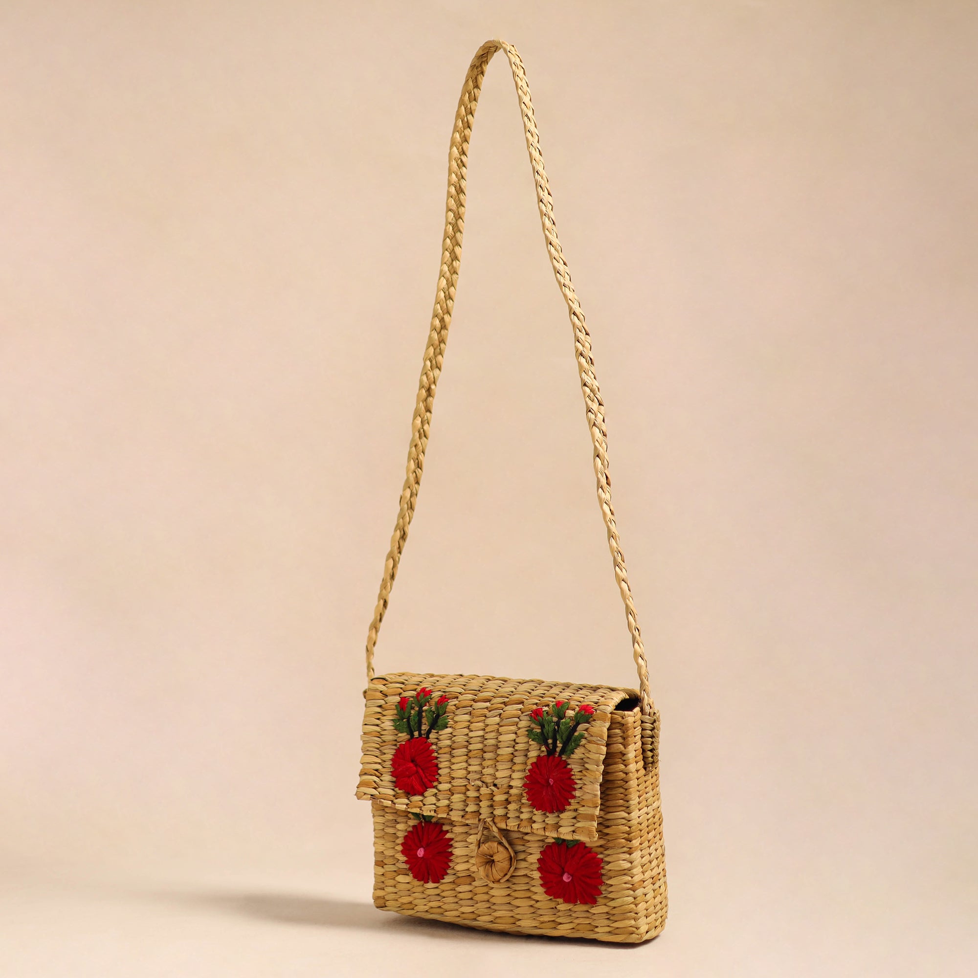 Beige - Handcrafted Natural Water Reed Embroidered Sling Bag 27