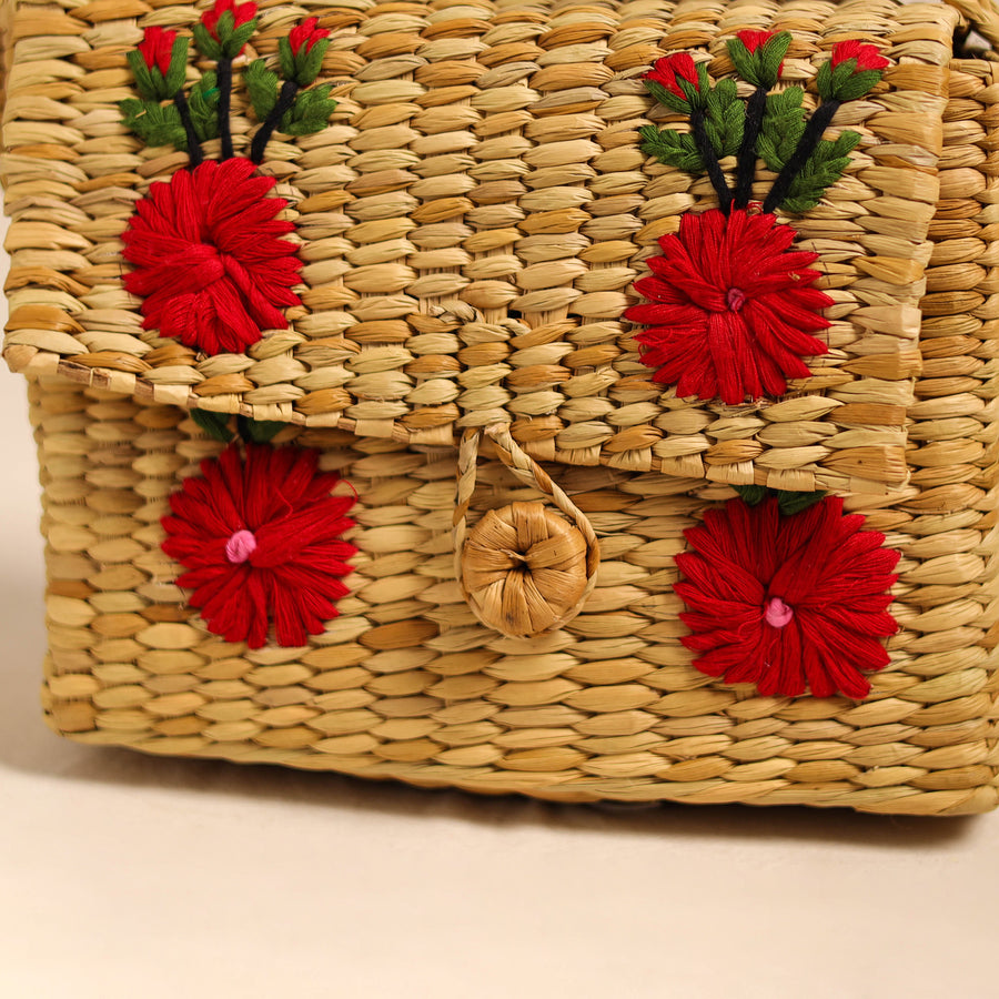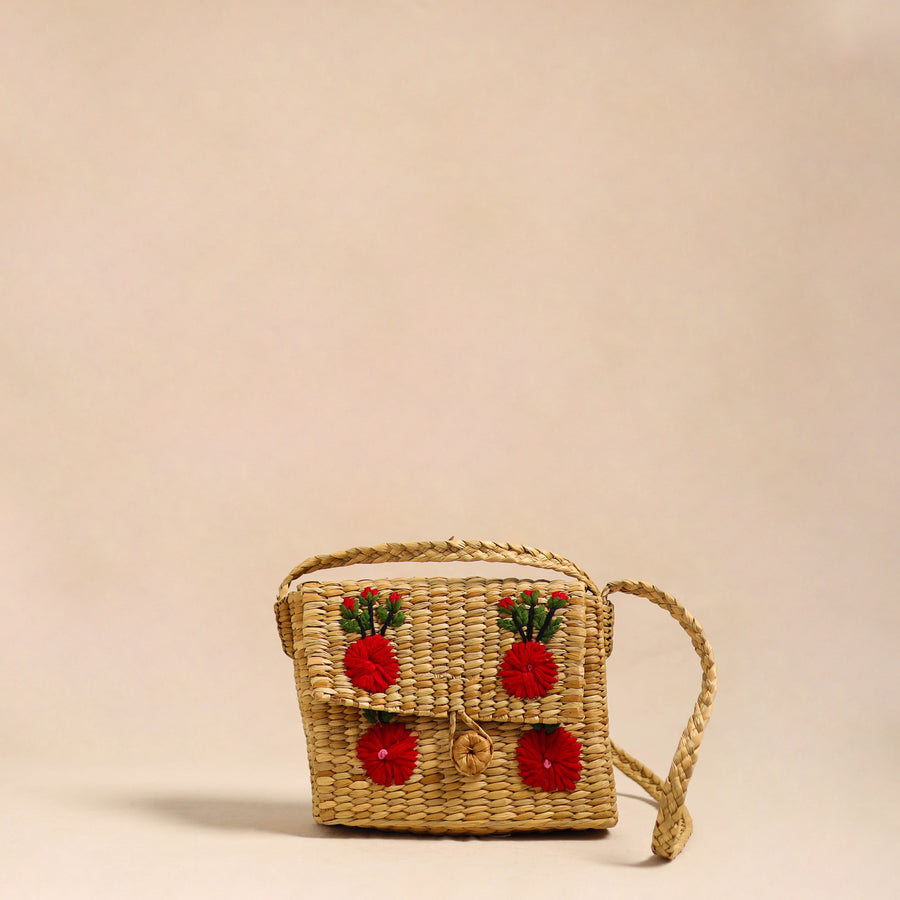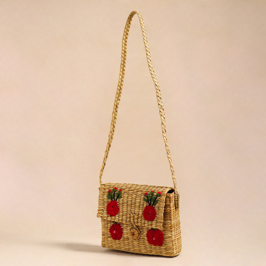 This exquisite beige handcrafted shopping sling bag from Manipur is made of natural water reed and adorned with intricate hand embroidery. The bag showcases the rich cultural heritage of Manipur, known for its traditional craftsmanship. Made from durable and eco-friendly water reed, the bag is perfect for everyday use. It offers ample . The vibrant hand embroidery adds an artistic touch, depicting traditional patterns and nature-inspired designs. With a secure closure, this bag combines traditional charm with contemporary style, making it a versatile and fashionable accessory for any occasion.