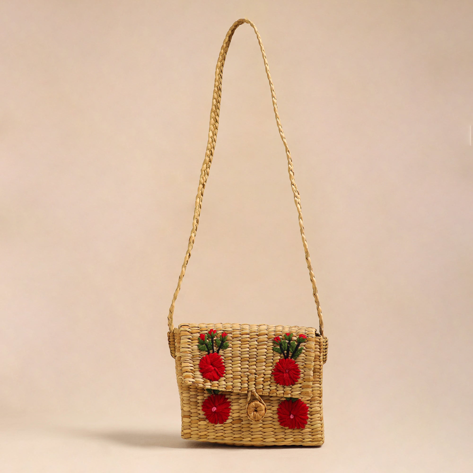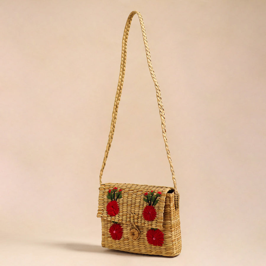 Beige - Handcrafted Natural Water Reed Embroidered Sling Bag
