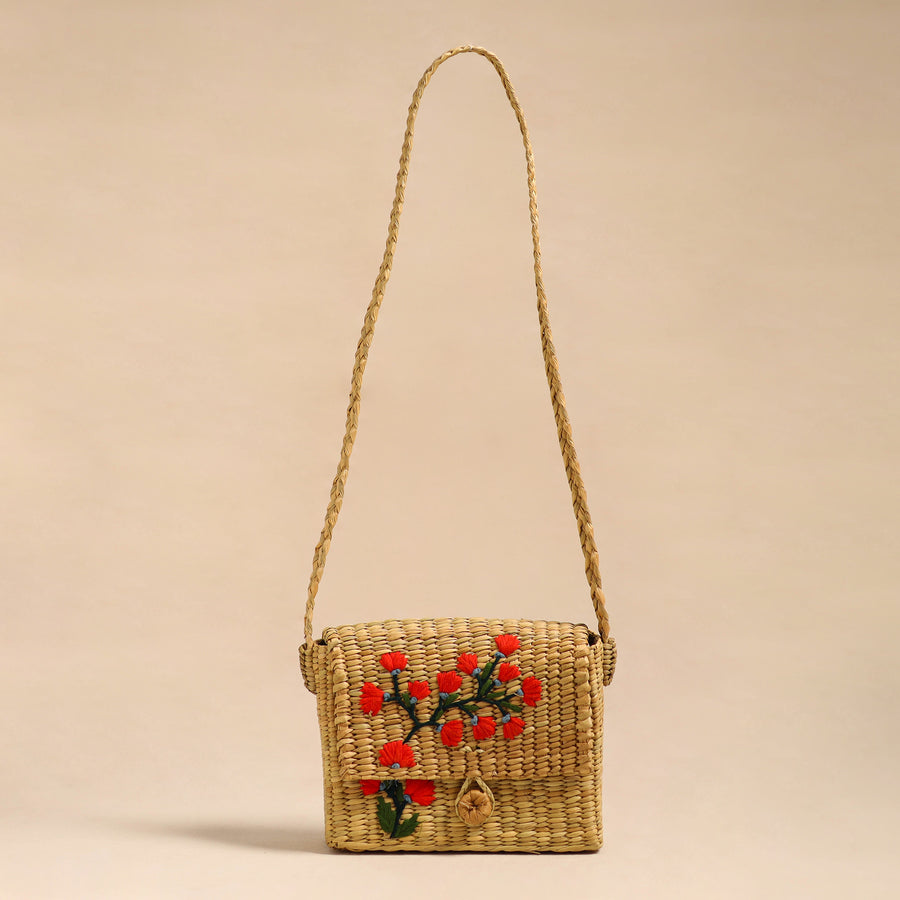 Beige - Handcrafted Natural Water Reed Embroidered Sling Bag 27