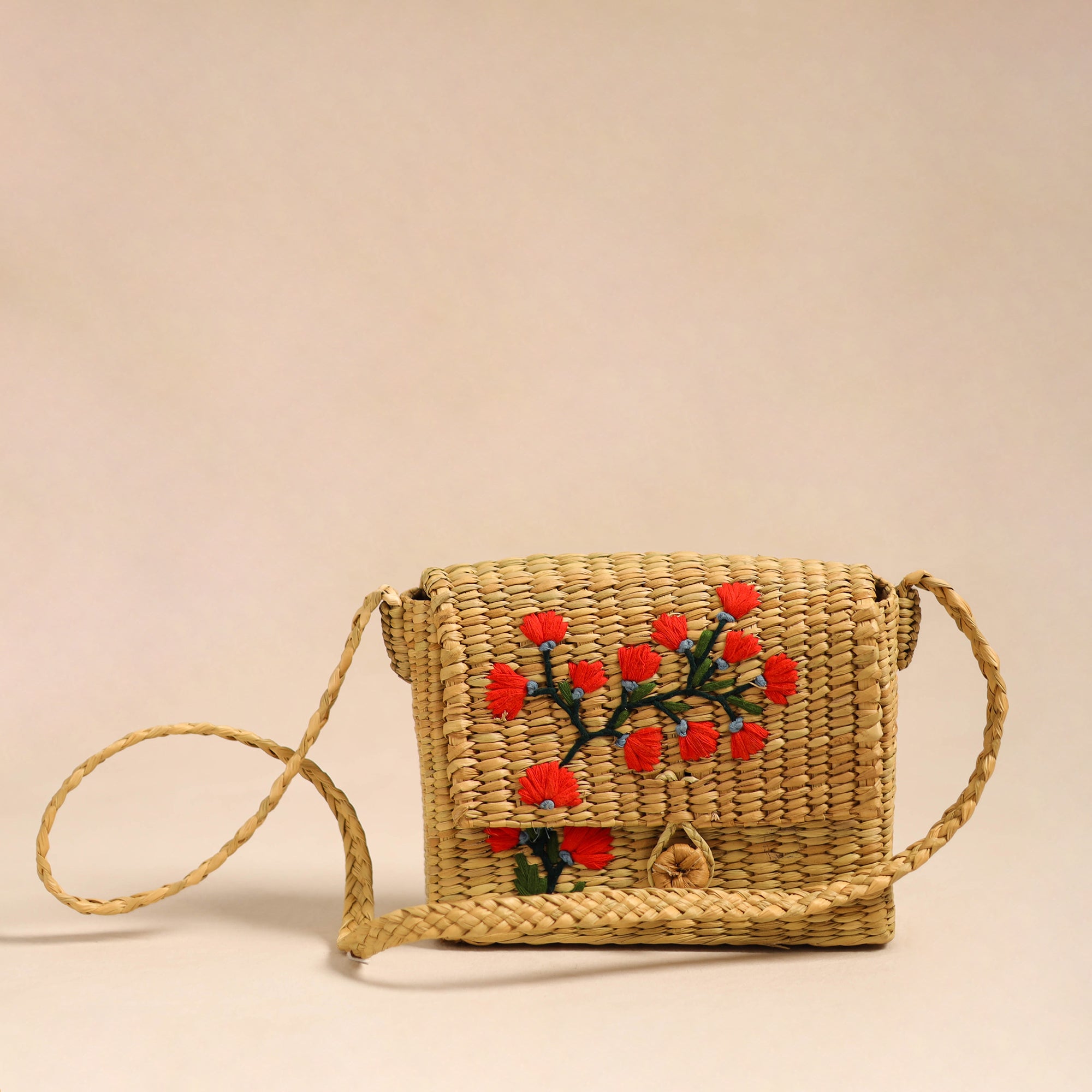 Beige - Handcrafted Natural Water Reed Embroidered Sling Bag 29