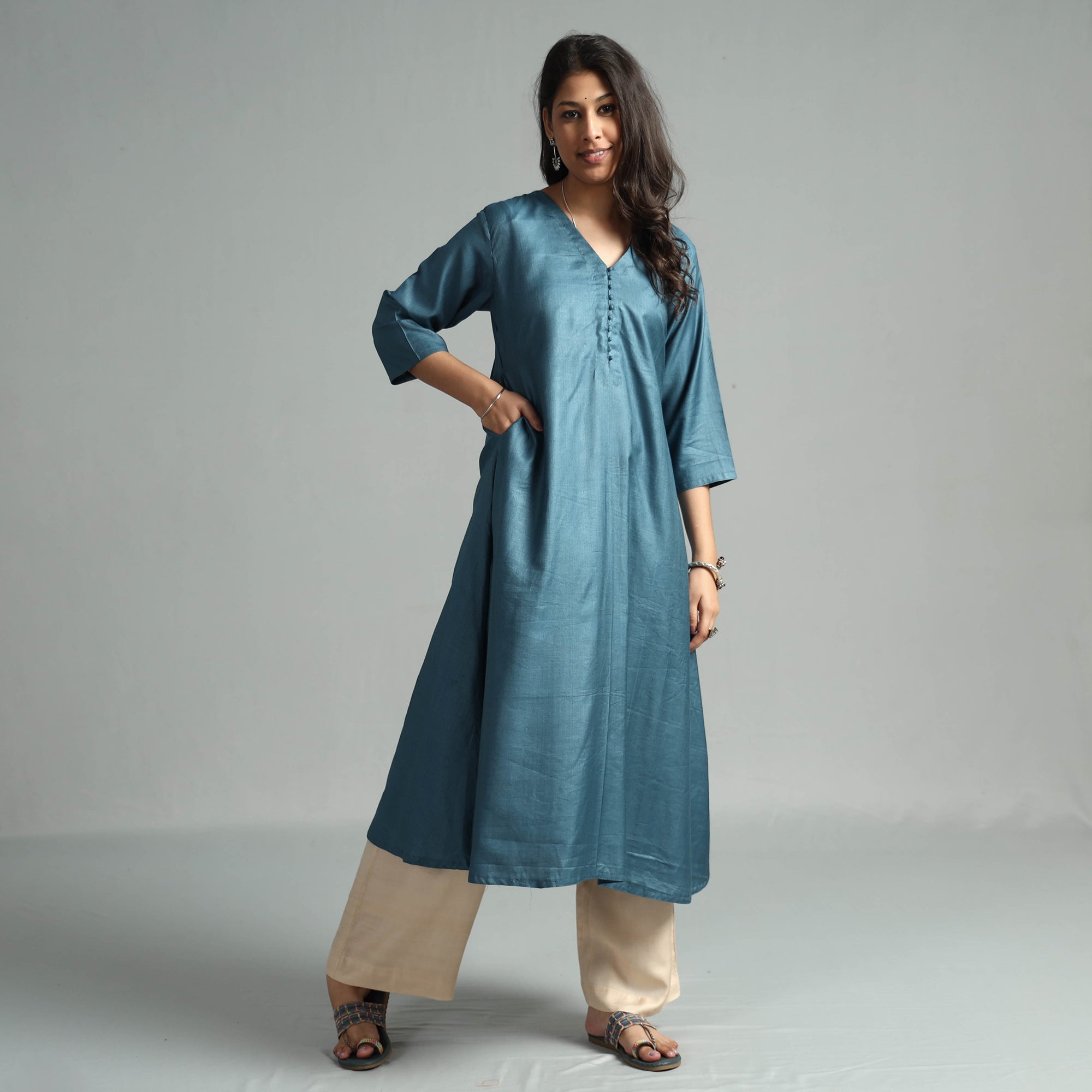 Elevate your style with our fine quality plain Tussar silk long Kurta, exuding sophistication and elegance. Tussar silk is renowned for its distinctive texture, boasting the lustrous sheen of silk and the comfort of cotton, making it a perfect choice for all seasons.