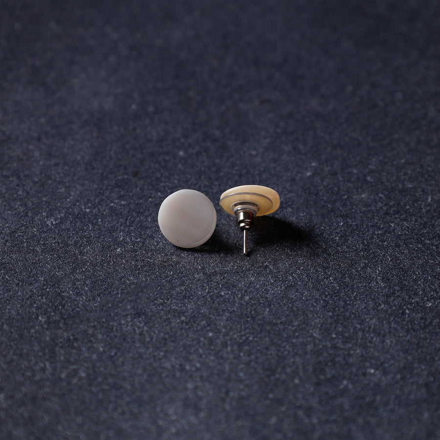 White handcrafted natural seashell stud earrings by Kinkar Ghosh. These unique mother-of-pearl shell earrings are unique and suitable to be worn on any special occasion. These earrings are a great wardrobe staple and are timeless in design.