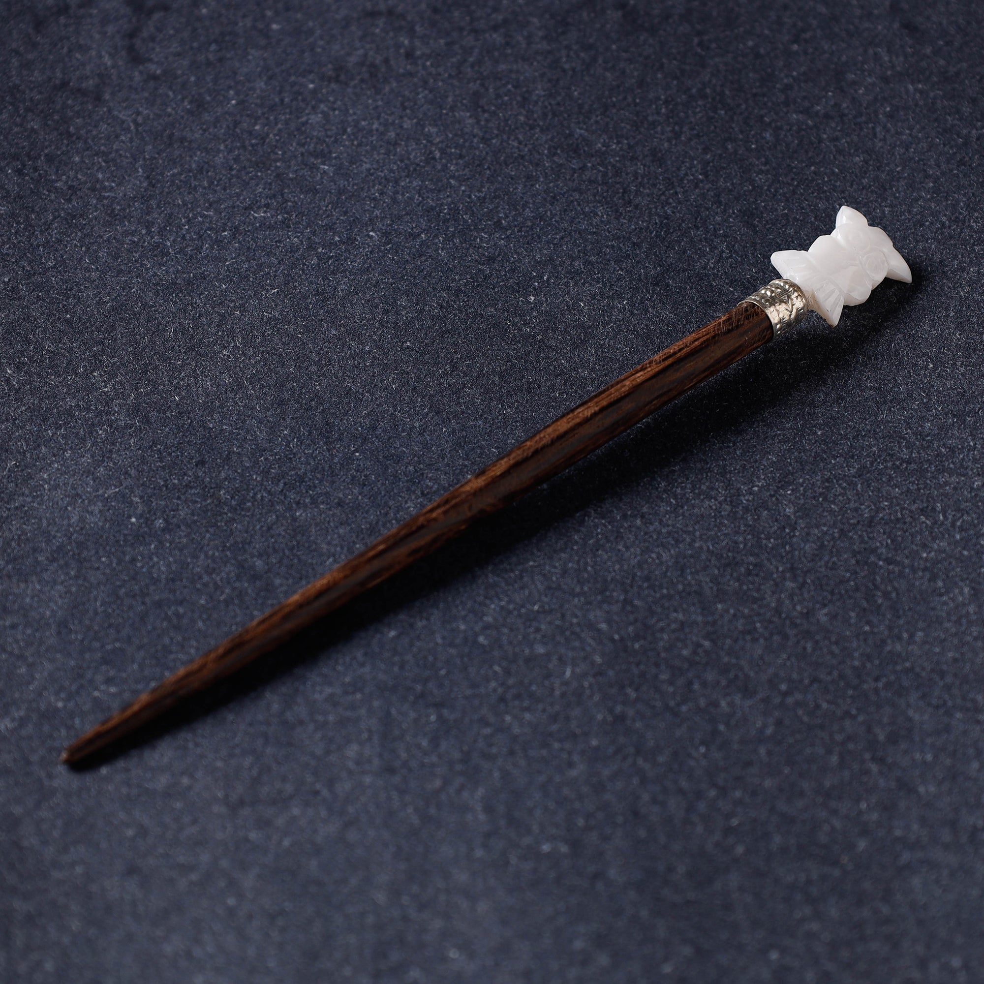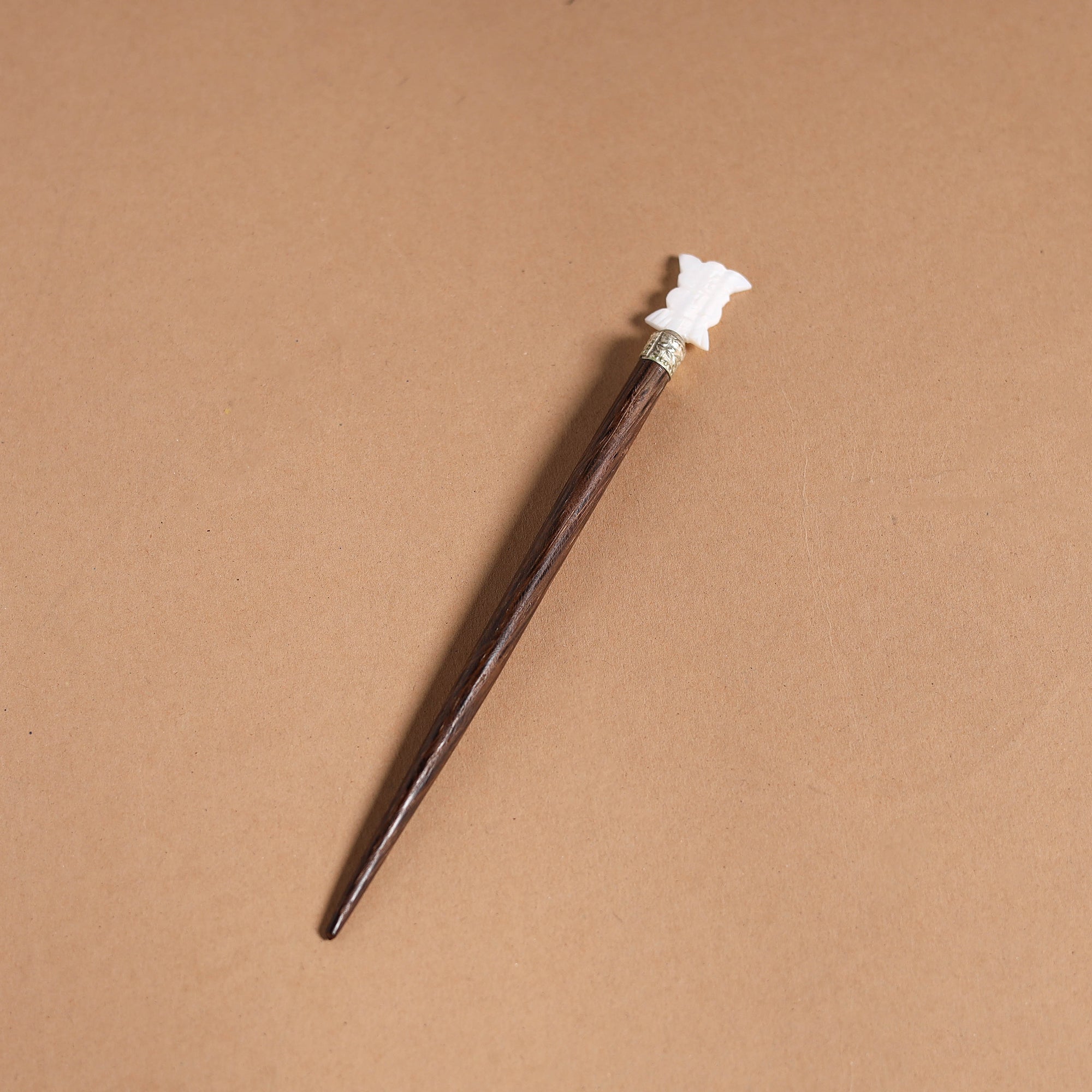 Handcrafted wooden juda stick with natural seashells by Kinkar Ghosh. This unique and lovely juda stick is made of wood and mother-of-pearl shell. It's perfect for you to wear on many occasions, such as parties, weddings, dancing, etc.