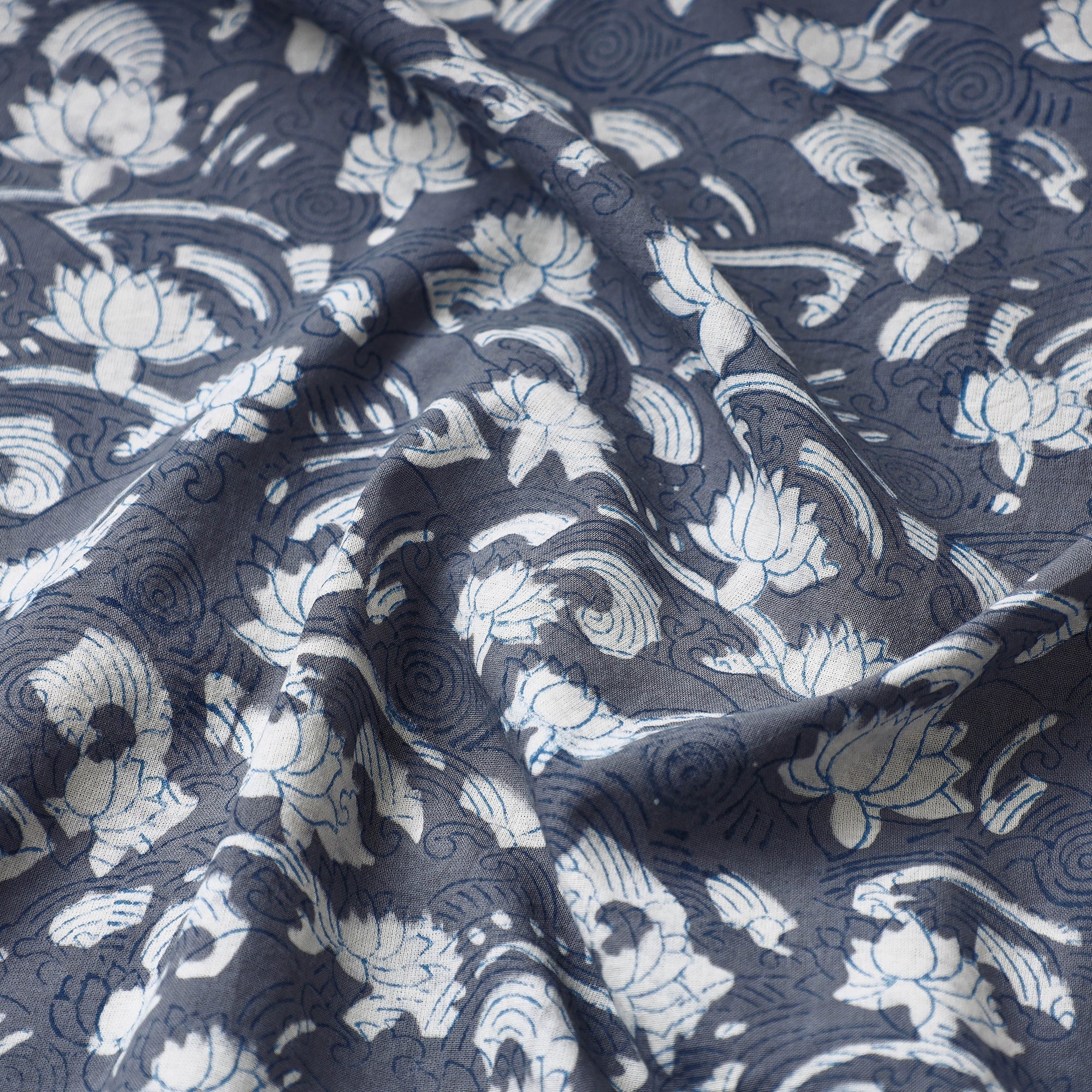 • Grey - akola hand block printed cotton fabric - handcrafted