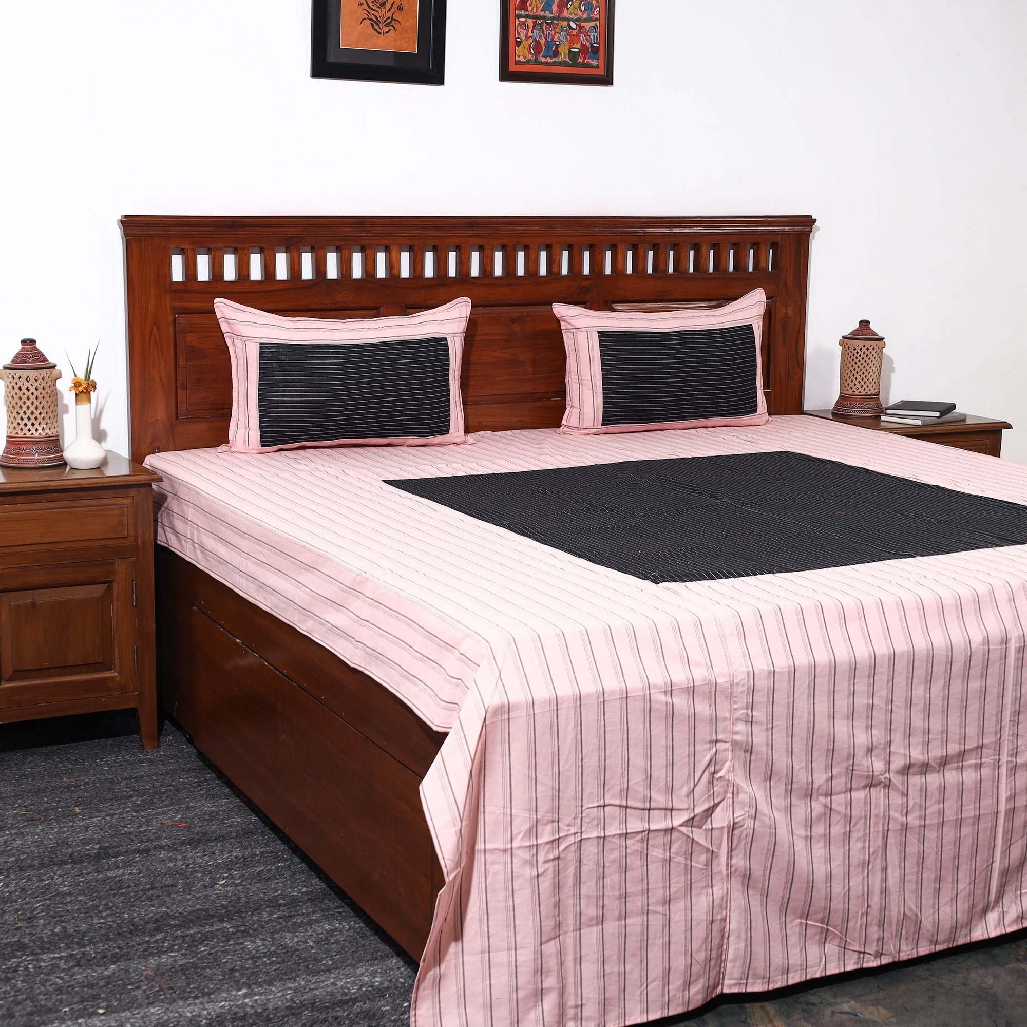 Fine quality pink jacquard cotton patchwork double bed cover with pillow covers, made from cotton fabrics, textured with handmade textiles of India. Drape your bed with these amazing bed covers which is sure to lend an amazing look to your bedroom.