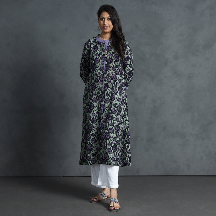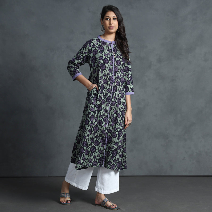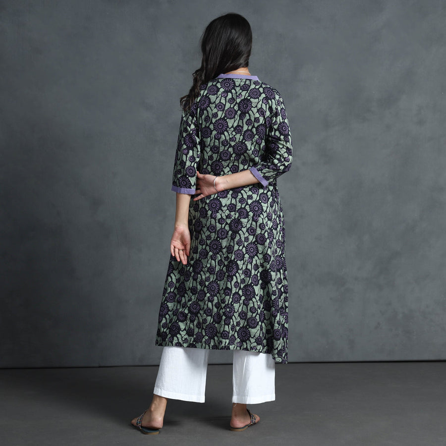 Brown - Cotton Hand Block Batik Print A-Line Kurta for women 15