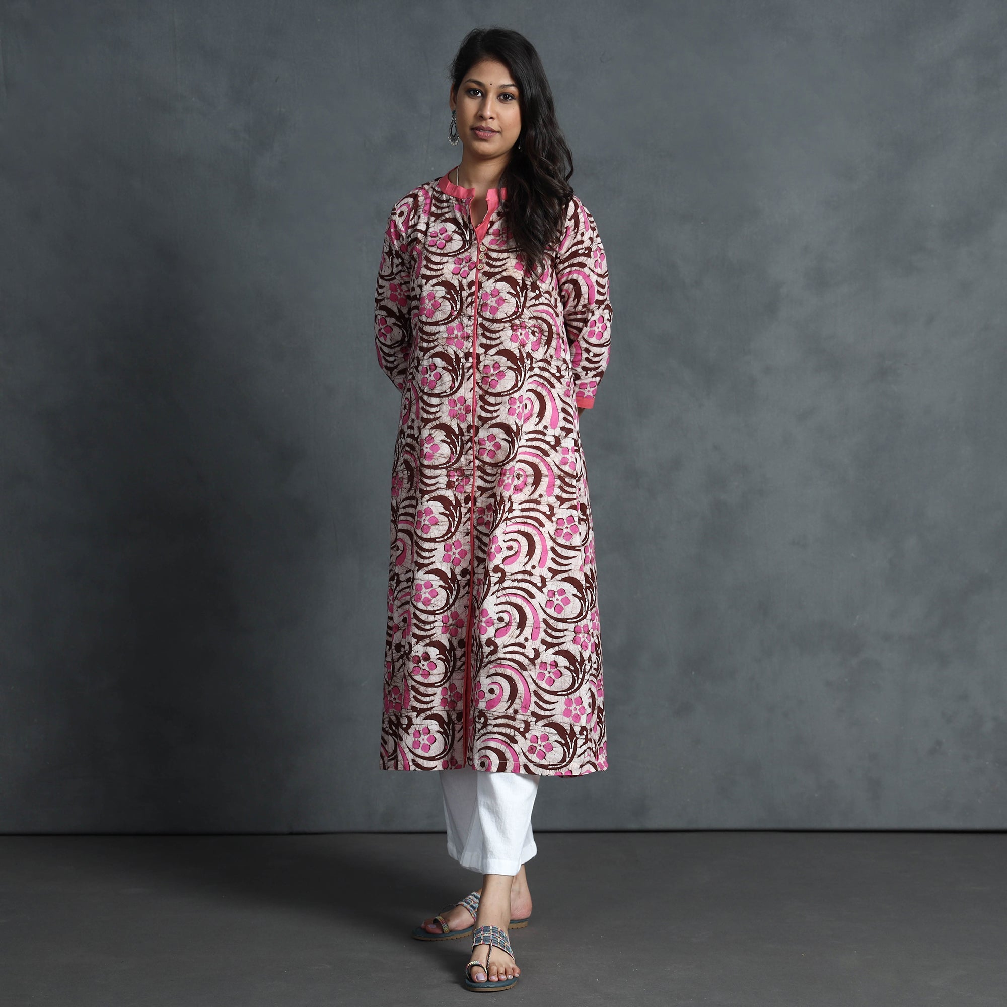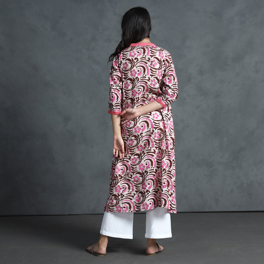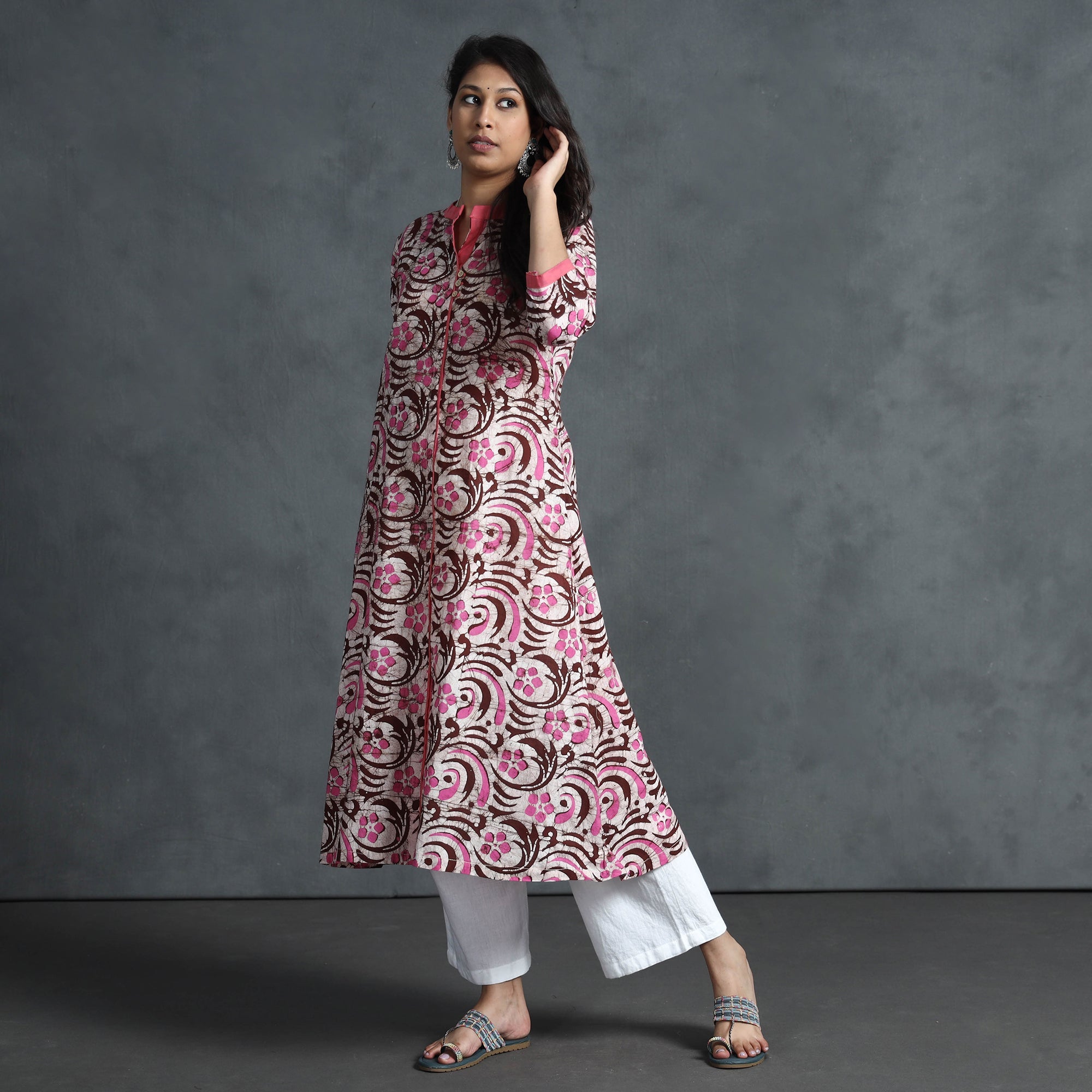 Brown - Cotton Hand Block Batik Print A-Line Kurta for women 15