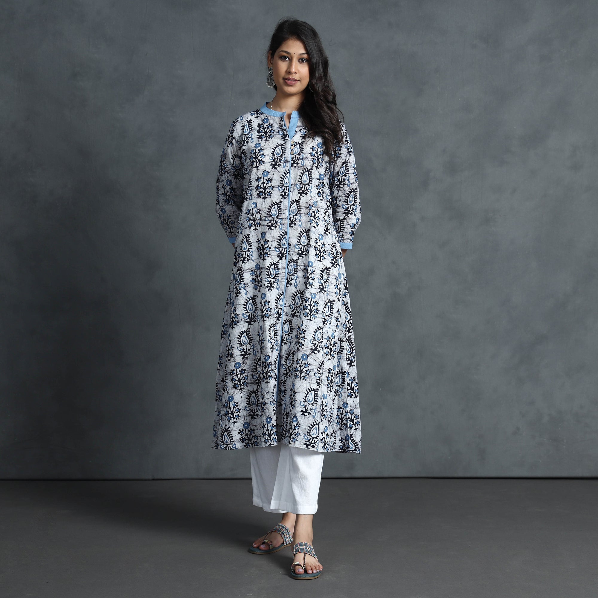 Beige - Cotton Hand Block Batik Print Embroidered A-Line Kurta for women 06